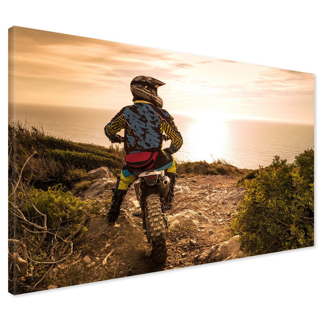 Obraz na płótnie z motywem motocykl, morze, krajobraz to kwintesencja estetyki i trwałości. Dzięki łatwemu montażowi i uniwersalnemu wzornictwu, czyni go idealnym wyborem zarówno do codziennego użytku, jak i na wyrafinowany prezent.