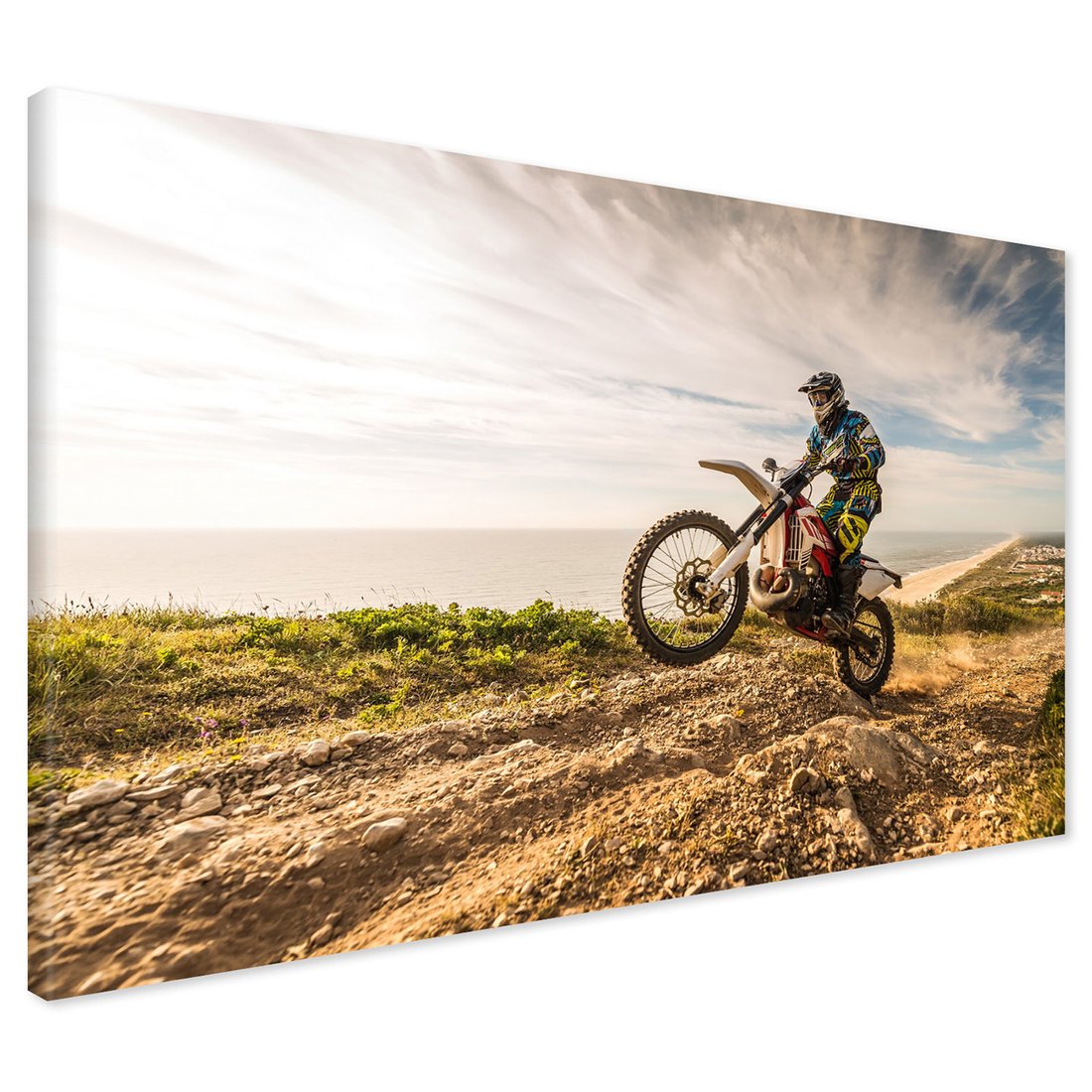 Obraz na płótnie z motywem motocykl, sport, adrenalina to kwintesencja estetyki i trwałości. Dzięki łatwemu montażowi i uniwersalnemu wzornictwu, czyni go idealnym wyborem zarówno do codziennego użytku, jak i na wyrafinowany prezent.