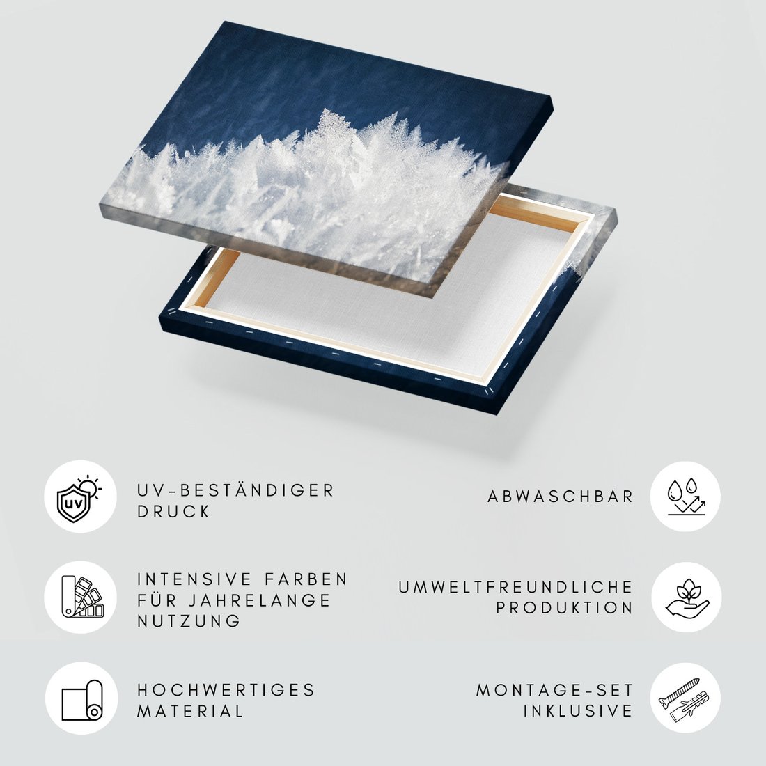 Obraz na płótnie z motywem mróz, kryształki, zima to kwintesencja estetyki i trwałości. Dzięki łatwemu montażowi i uniwersalnemu wzornictwu, czyni go idealnym wyborem zarówno do codziennego użytku, jak i na wyrafinowany prezent.