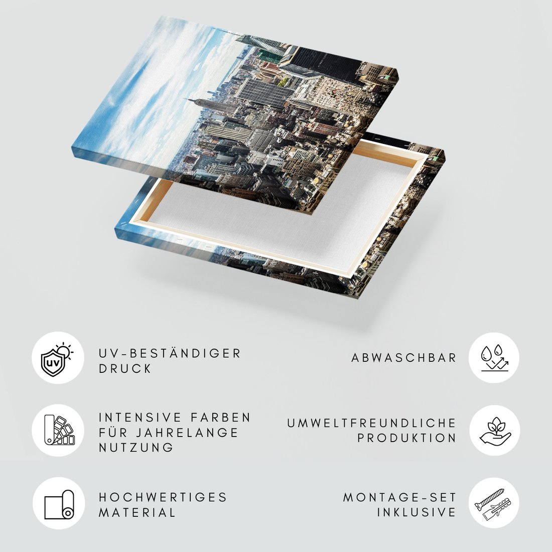 Obraz na płótnie z motywem Nowy Jork, miasto, budynki to kwintesencja estetyki i trwałości. Dzięki łatwemu montażowi i uniwersalnemu wzornictwu, czyni go idealnym wyborem zarówno do codziennego użytku, jak i na wyrafinowany prezent.