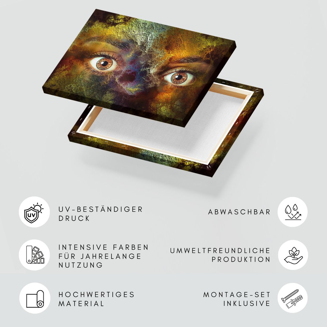 Obraz na płótnie z motywem oczy, abstrakcja, twarz to kwintesencja estetyki i trwałości. Dzięki łatwemu montażowi i uniwersalnemu wzornictwu, czyni go idealnym wyborem zarówno do codziennego użytku, jak i na wyrafinowany prezent.
