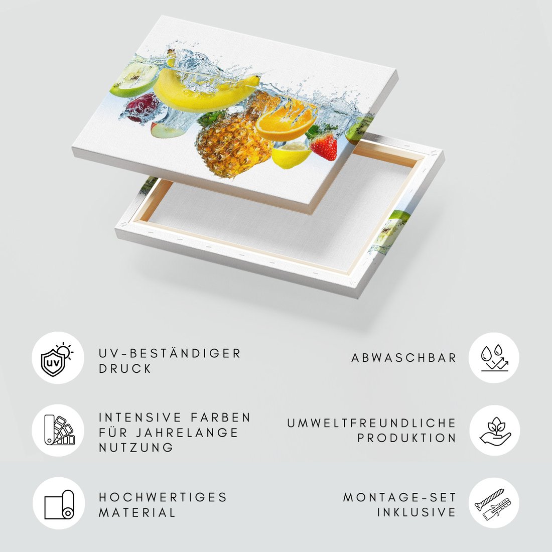 Obraz na płótnie z motywem owoce, woda, świeżość to kwintesencja estetyki i trwałości. Dzięki łatwemu montażowi i uniwersalnemu wzornictwu, czyni go idealnym wyborem zarówno do codziennego użytku, jak i na wyrafinowany prezent.