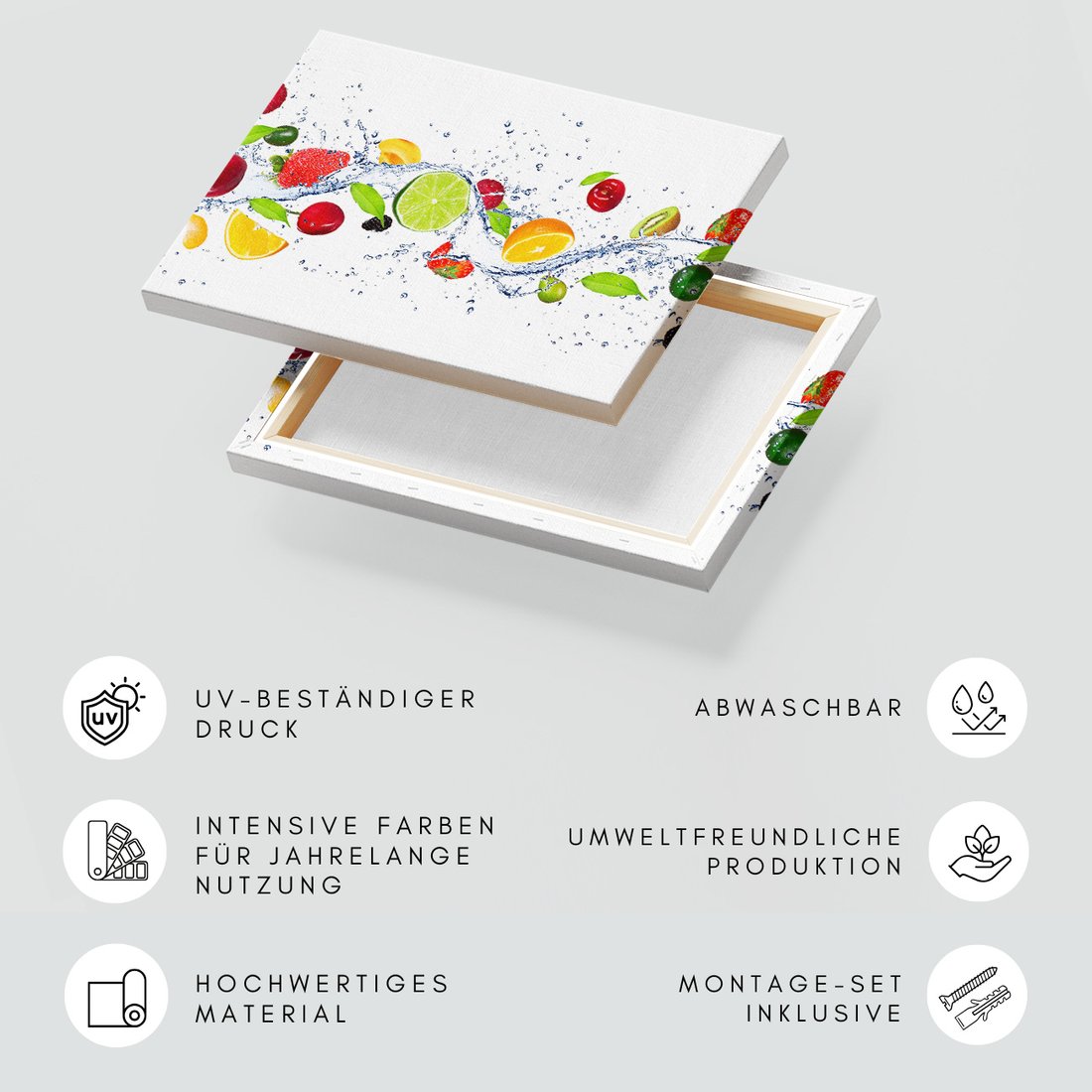 Obraz na płótnie z motywem owoce, woda, świeżość to kwintesencja estetyki i trwałości. Dzięki łatwemu montażowi i uniwersalnemu wzornictwu, czyni go idealnym wyborem zarówno do codziennego użytku, jak i na wyrafinowany prezent.