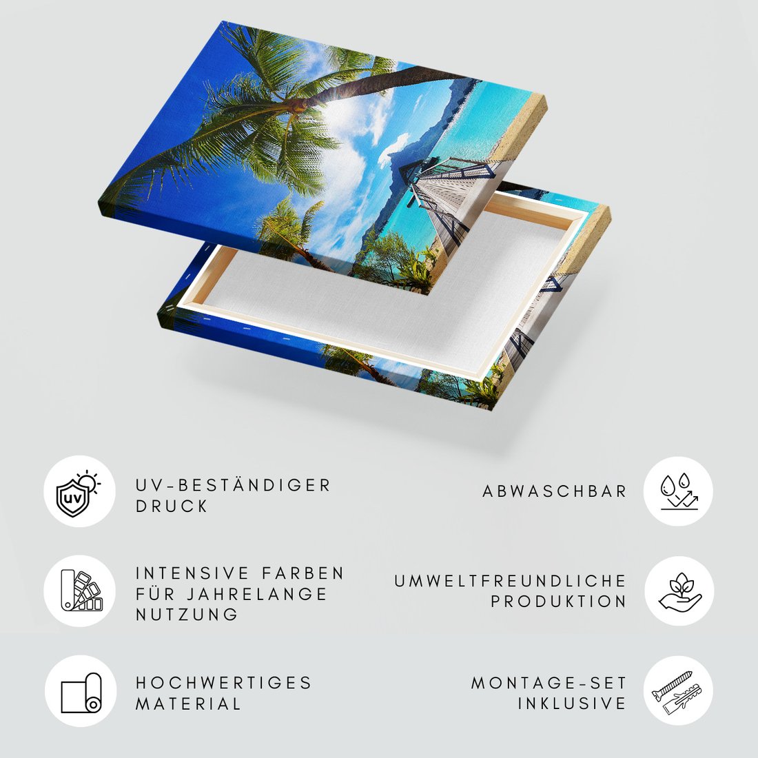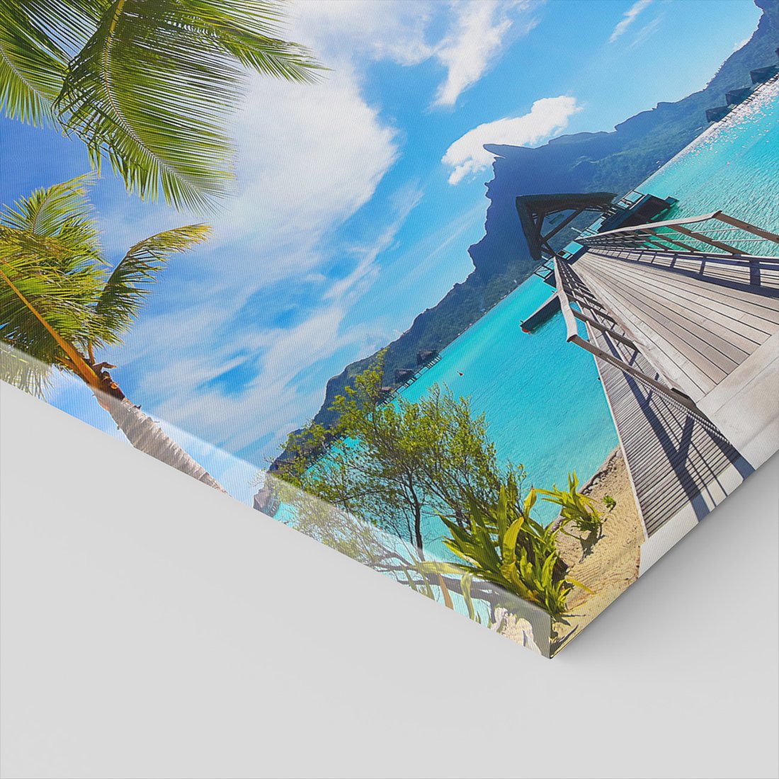 Obraz na płótnie z motywem palmy, plaża, woda to kwintesencja estetyki i trwałości. Dzięki łatwemu montażowi i uniwersalnemu wzornictwu, czyni go idealnym wyborem zarówno do codziennego użytku, jak i na wyrafinowany prezent.