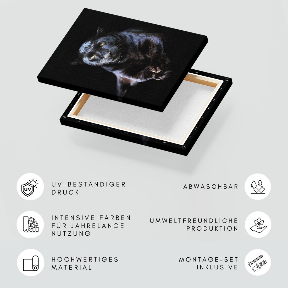 Obraz na płótnie z motywem pantera, czarna, kot to kwintesencja estetyki i trwałości. Dzięki łatwemu montażowi i uniwersalnemu wzornictwu, czyni go idealnym wyborem zarówno do codziennego użytku, jak i na wyrafinowany prezent.