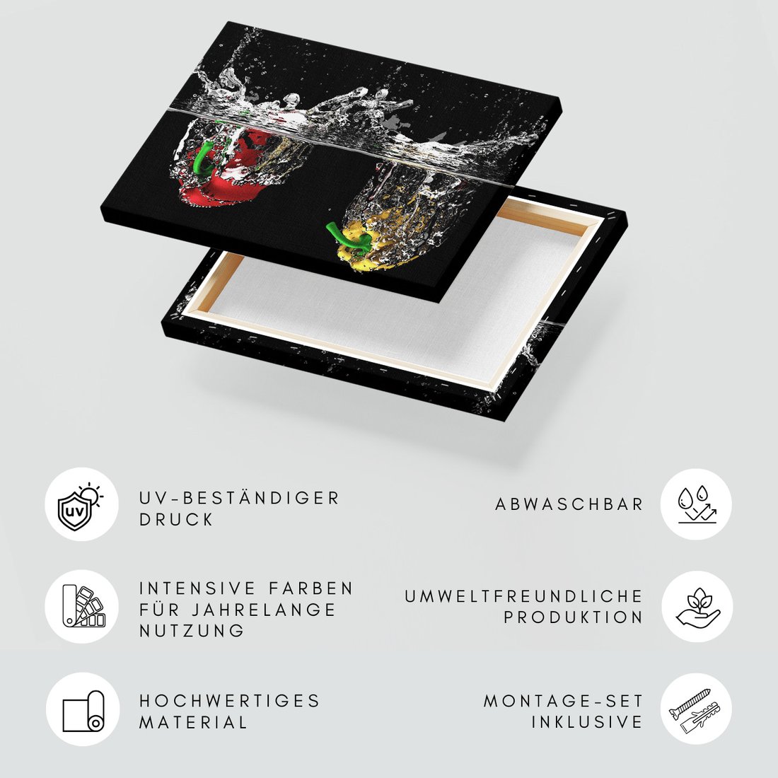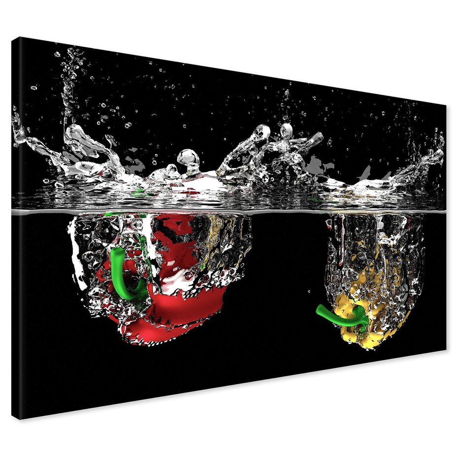 Obraz na płótnie z motywem papryka, woda, plusk to kwintesencja estetyki i trwałości. Dzięki łatwemu montażowi i uniwersalnemu wzornictwu, czyni go idealnym wyborem zarówno do codziennego użytku, jak i na wyrafinowany prezent.