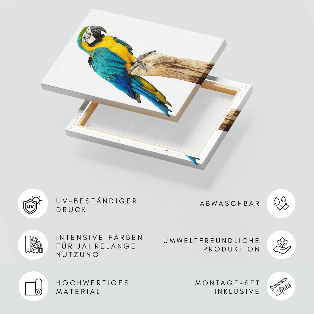 Obraz na płótnie z motywem papuga, ara, egzotyczne to kwintesencja estetyki i trwałości. Dzięki łatwemu montażowi i uniwersalnemu wzornictwu, czyni go idealnym wyborem zarówno do codziennego użytku, jak i na wyrafinowany prezent.