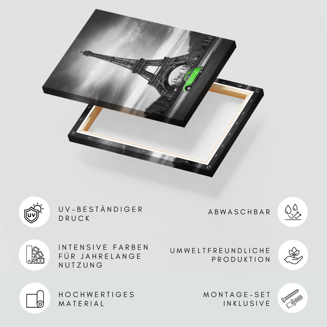Obraz na płótnie z motywem Paryż, wieża Eiffla, samochód to kwintesencja estetyki i trwałości. Dzięki łatwemu montażowi i uniwersalnemu wzornictwu, czyni go idealnym wyborem zarówno do codziennego użytku, jak i na wyrafinowany prezent.