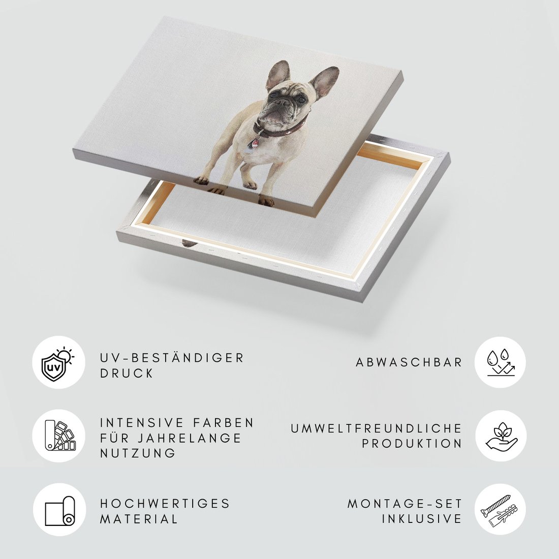 Obraz na płótnie z motywem pies, buldog, zwierzę to kwintesencja estetyki i trwałości. Dzięki łatwemu montażowi i uniwersalnemu wzornictwu, czyni go idealnym wyborem zarówno do codziennego użytku, jak i na wyrafinowany prezent.