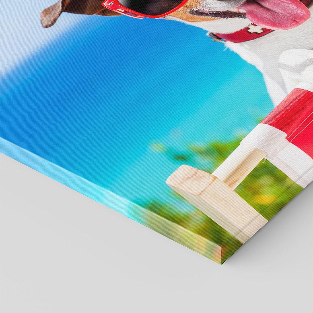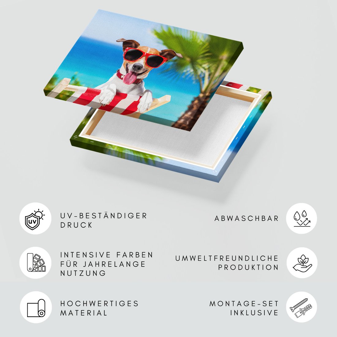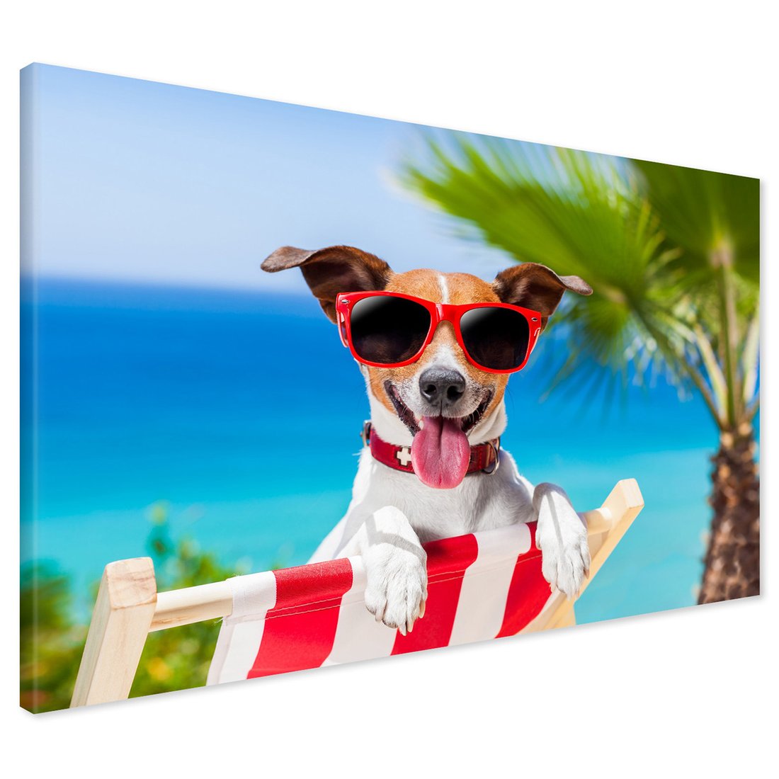 Obraz na płótnie z motywem pies, okulary, plaża to kwintesencja estetyki i trwałości. Dzięki łatwemu montażowi i uniwersalnemu wzornictwu, czyni go idealnym wyborem zarówno do codziennego użytku, jak i na wyrafinowany prezent.