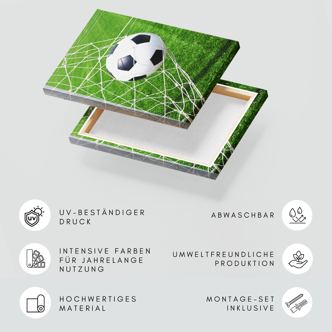 Obraz na płótnie z motywem piłka nożna, bramka, siatka to kwintesencja estetyki i trwałości. Dzięki łatwemu montażowi i uniwersalnemu wzornictwu, czyni go idealnym wyborem zarówno do codziennego użytku, jak i na wyrafinowany prezent.