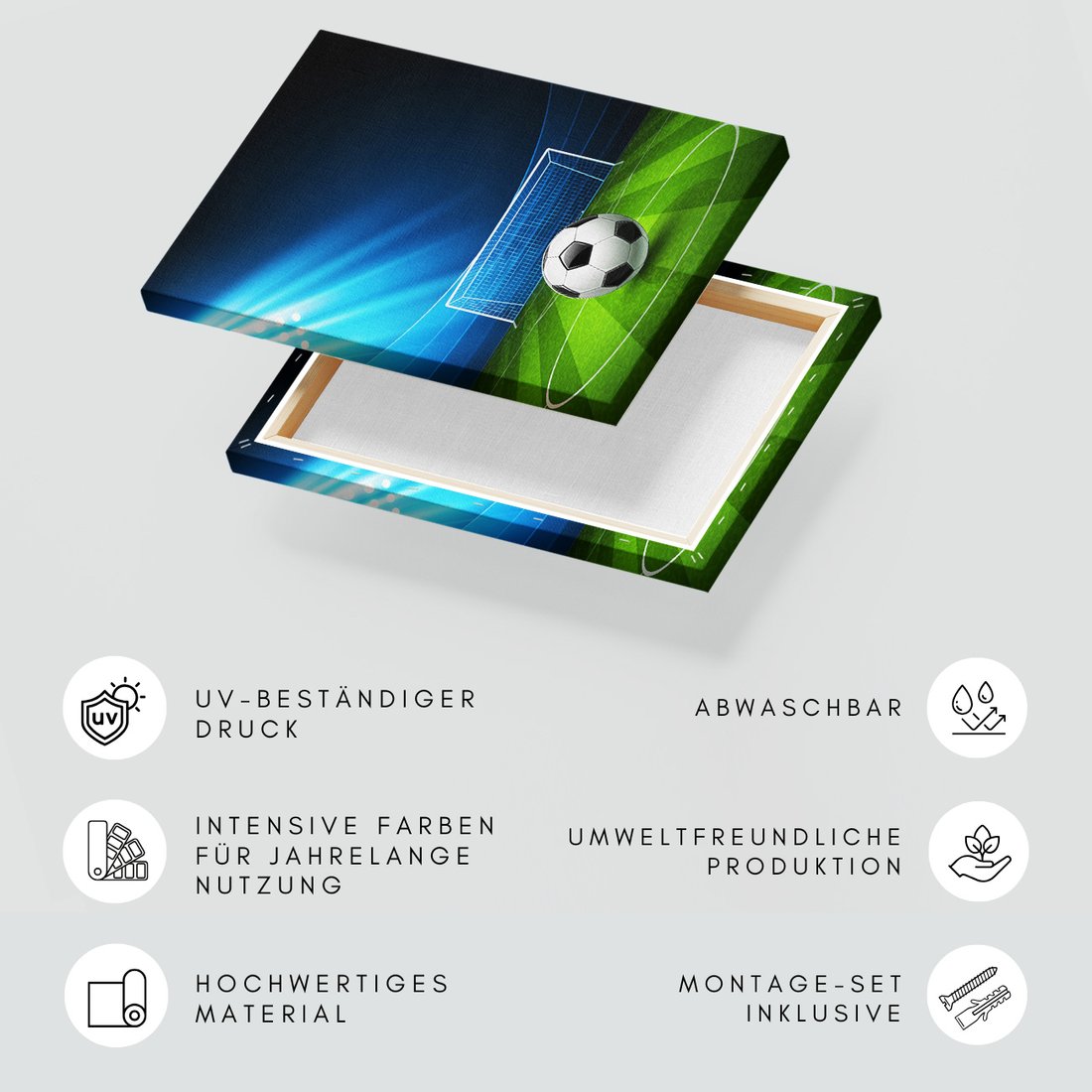 Obraz na płótnie z motywem piłka nożna, sport, gol to kwintesencja estetyki i trwałości. Dzięki łatwemu montażowi i uniwersalnemu wzornictwu, czyni go idealnym wyborem zarówno do codziennego użytku, jak i na wyrafinowany prezent.
