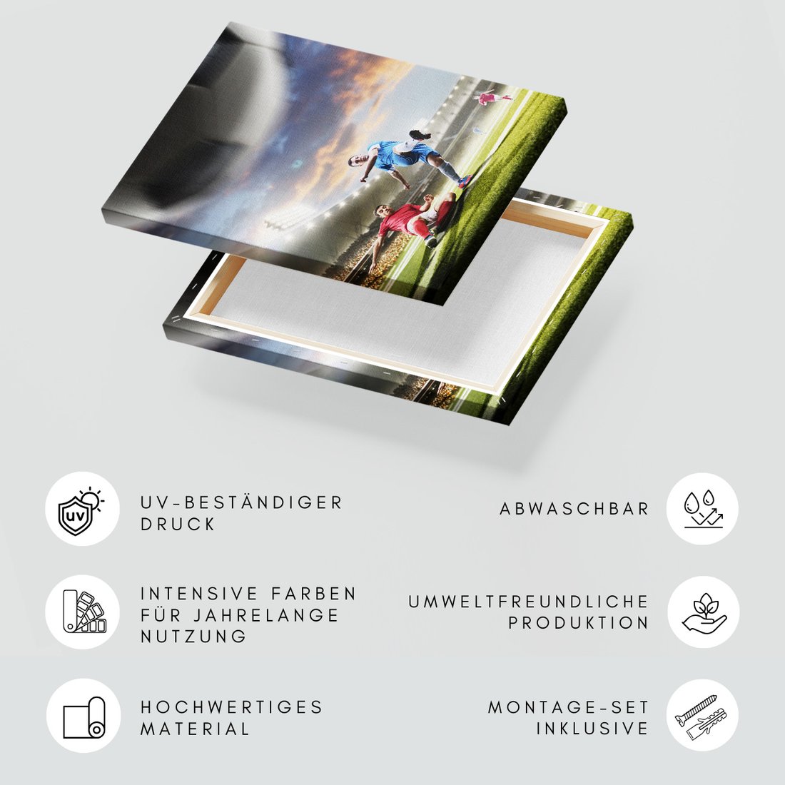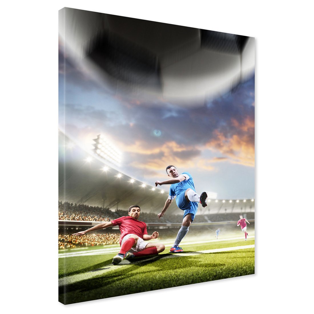 Obraz na płótnie z motywem piłka nożna, sport, stadion to kwintesencja estetyki i trwałości. Dzięki łatwemu montażowi i uniwersalnemu wzornictwu, czyni go idealnym wyborem zarówno do codziennego użytku, jak i na wyrafinowany prezent.