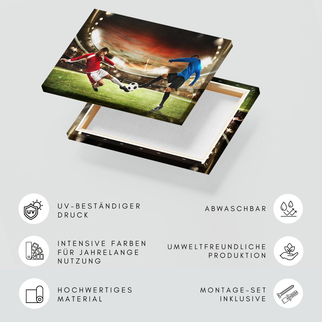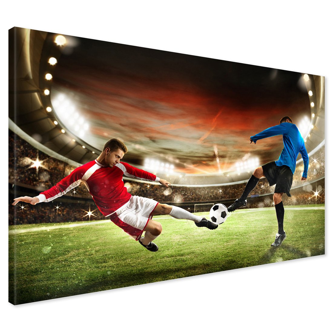 Obraz na płótnie z motywem piłka nożna, sportowcy, stadion to kwintesencja estetyki i trwałości. Dzięki łatwemu montażowi i uniwersalnemu wzornictwu, czyni go idealnym wyborem zarówno do codziennego użytku, jak i na wyrafinowany prezent.