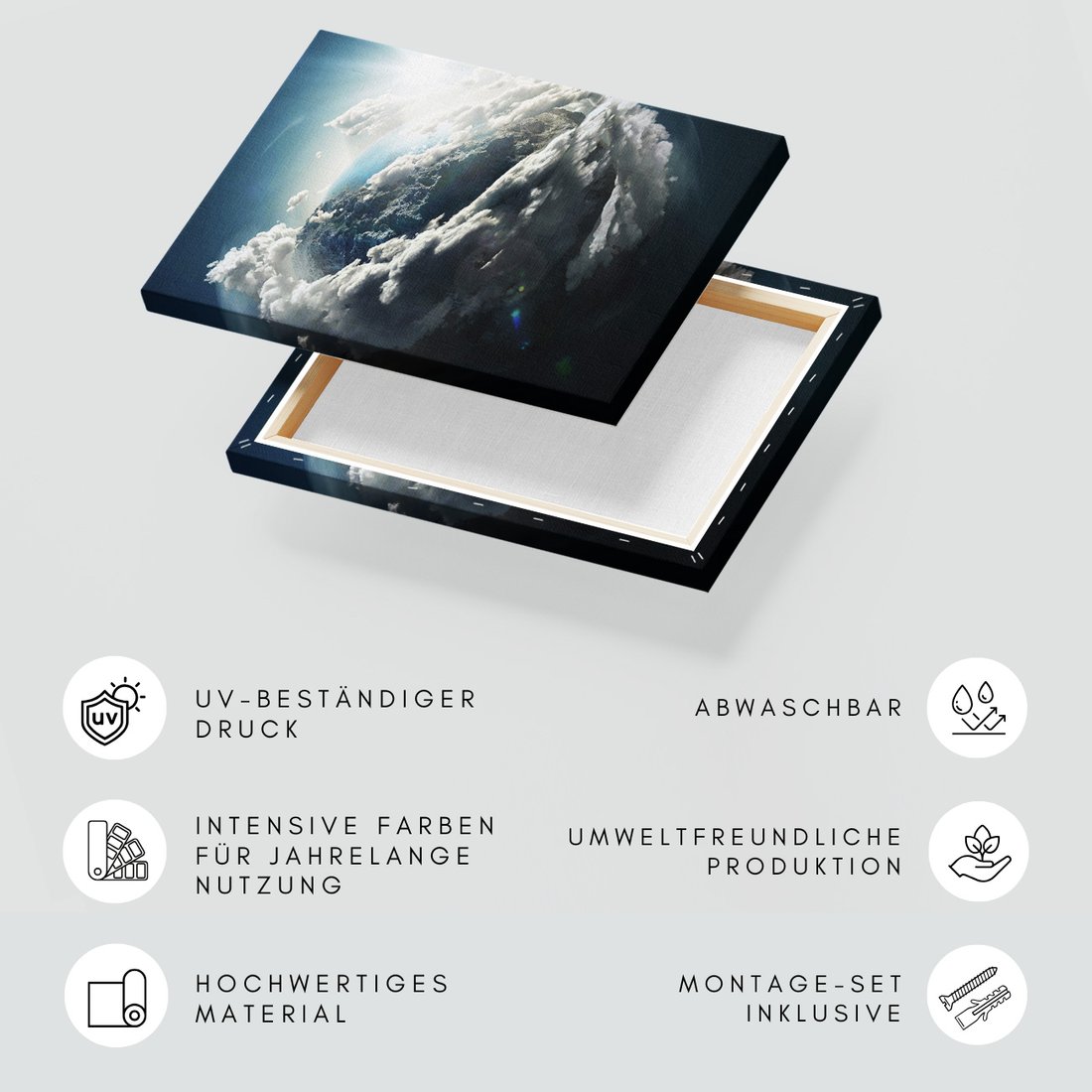 Obraz na płótnie z motywem planeta, chmury, kosmos to kwintesencja estetyki i trwałości. Dzięki łatwemu montażowi i uniwersalnemu wzornictwu, czyni go idealnym wyborem zarówno do codziennego użytku, jak i na wyrafinowany prezent.
