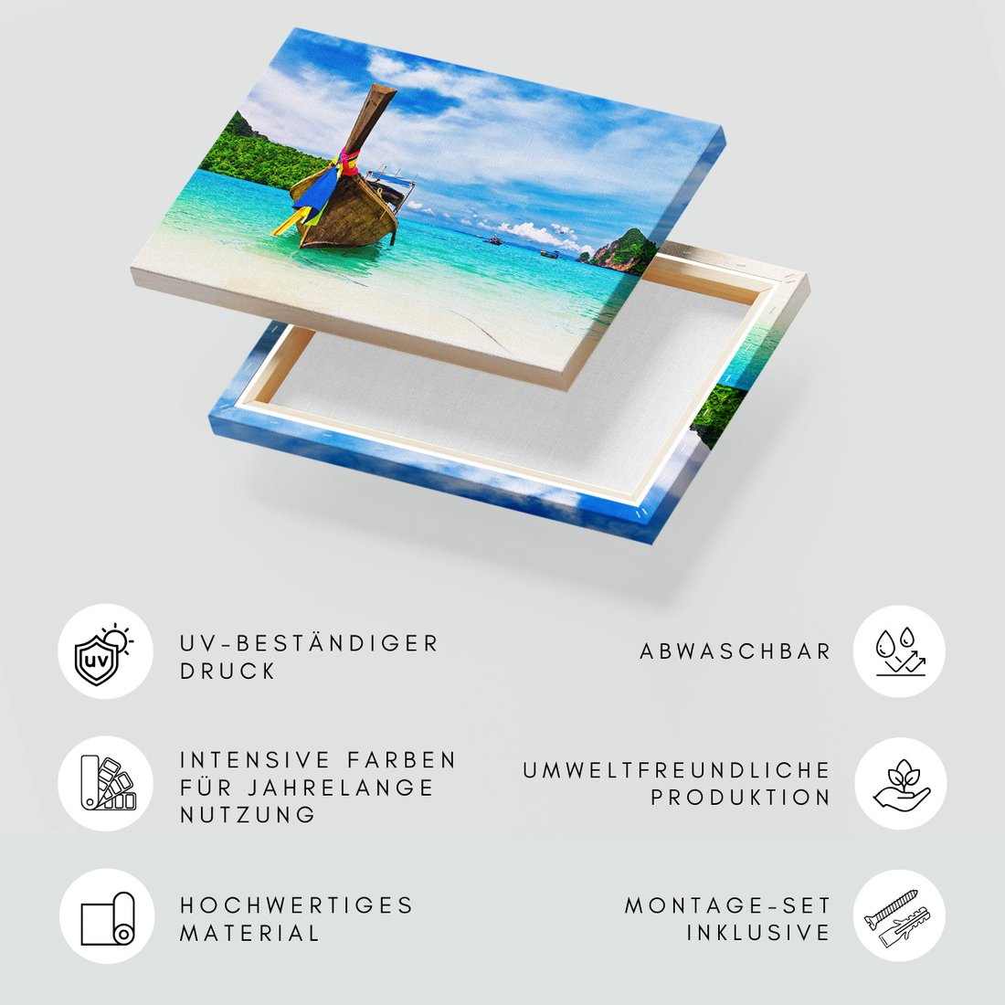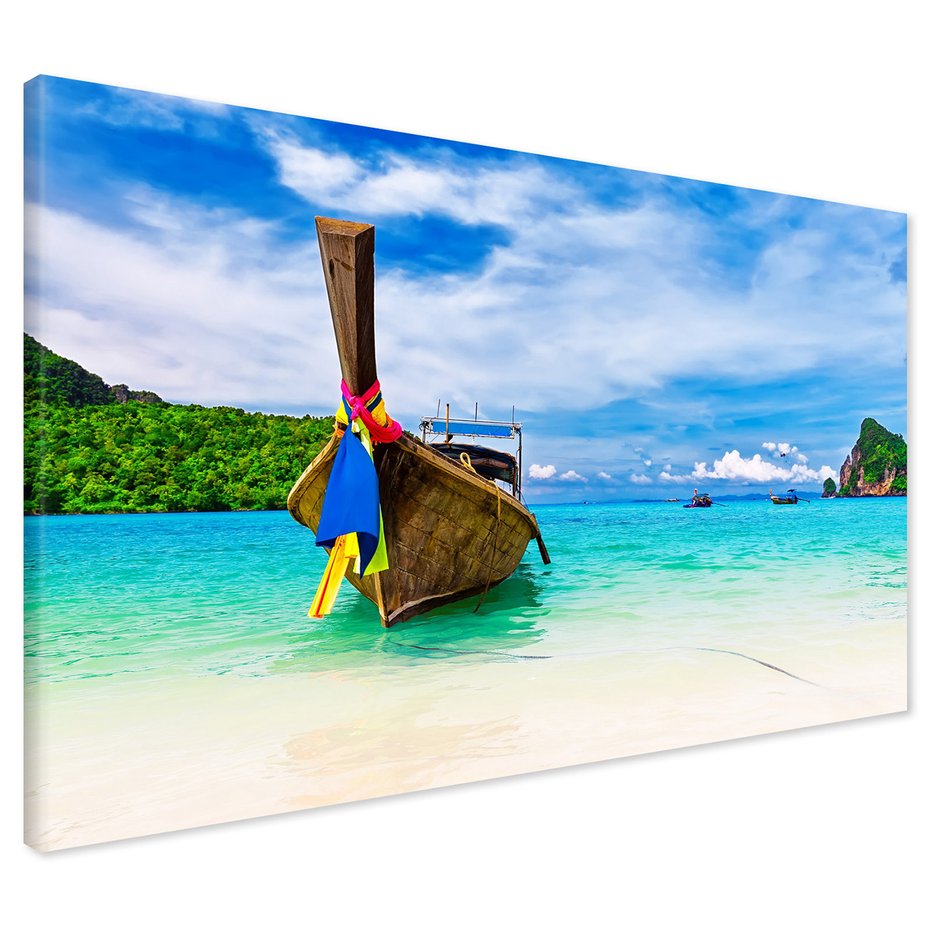 Obraz na płótnie z motywem plaża, łódź, morze to kwintesencja estetyki i trwałości. Dzięki łatwemu montażowi i uniwersalnemu wzornictwu, czyni go idealnym wyborem zarówno do codziennego użytku, jak i na wyrafinowany prezent.