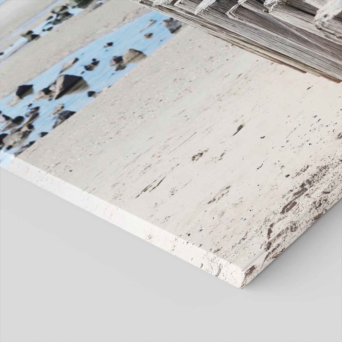 Obraz na płótnie z motywem plaża, morze, drewno to kwintesencja estetyki i trwałości. Dzięki łatwemu montażowi i uniwersalnemu wzornictwu, czyni go idealnym wyborem zarówno do codziennego użytku, jak i na wyrafinowany prezent.