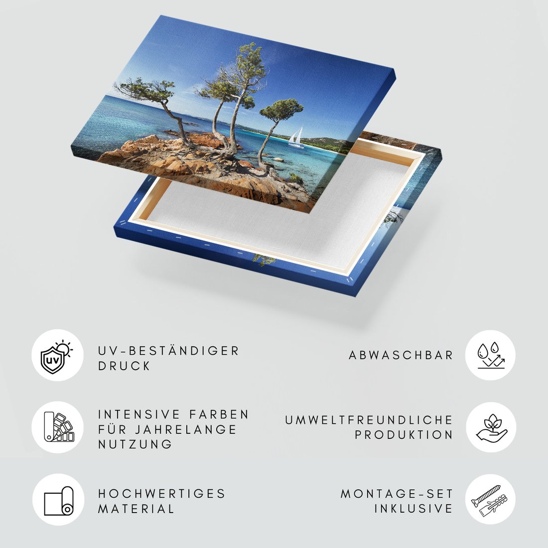 Obraz na płótnie z motywem plaża, morze, drzewa to kwintesencja estetyki i trwałości. Dzięki łatwemu montażowi i uniwersalnemu wzornictwu, czyni go idealnym wyborem zarówno do codziennego użytku, jak i na wyrafinowany prezent.