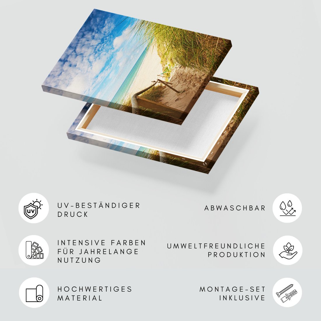 Obraz na płótnie z motywem plaża, morze, krajobraz to kwintesencja estetyki i trwałości. Dzięki łatwemu montażowi i uniwersalnemu wzornictwu, czyni go idealnym wyborem zarówno do codziennego użytku, jak i na wyrafinowany prezent.