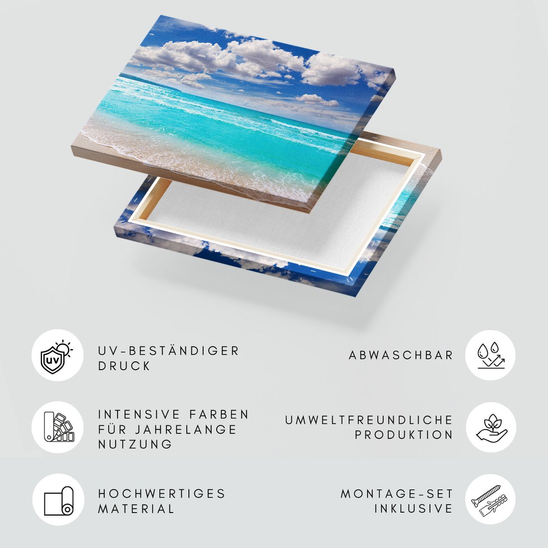 Obraz na płótnie z motywem plaża, morze, niebo to kwintesencja estetyki i trwałości. Dzięki łatwemu montażowi i uniwersalnemu wzornictwu, czyni go idealnym wyborem zarówno do codziennego użytku, jak i na wyrafinowany prezent.