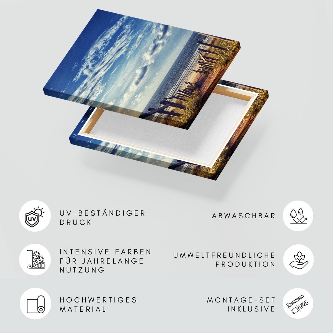 Obraz na płótnie z motywem plaża, morze, niebo to kwintesencja estetyki i trwałości. Dzięki łatwemu montażowi i uniwersalnemu wzornictwu, czyni go idealnym wyborem zarówno do codziennego użytku, jak i na wyrafinowany prezent.