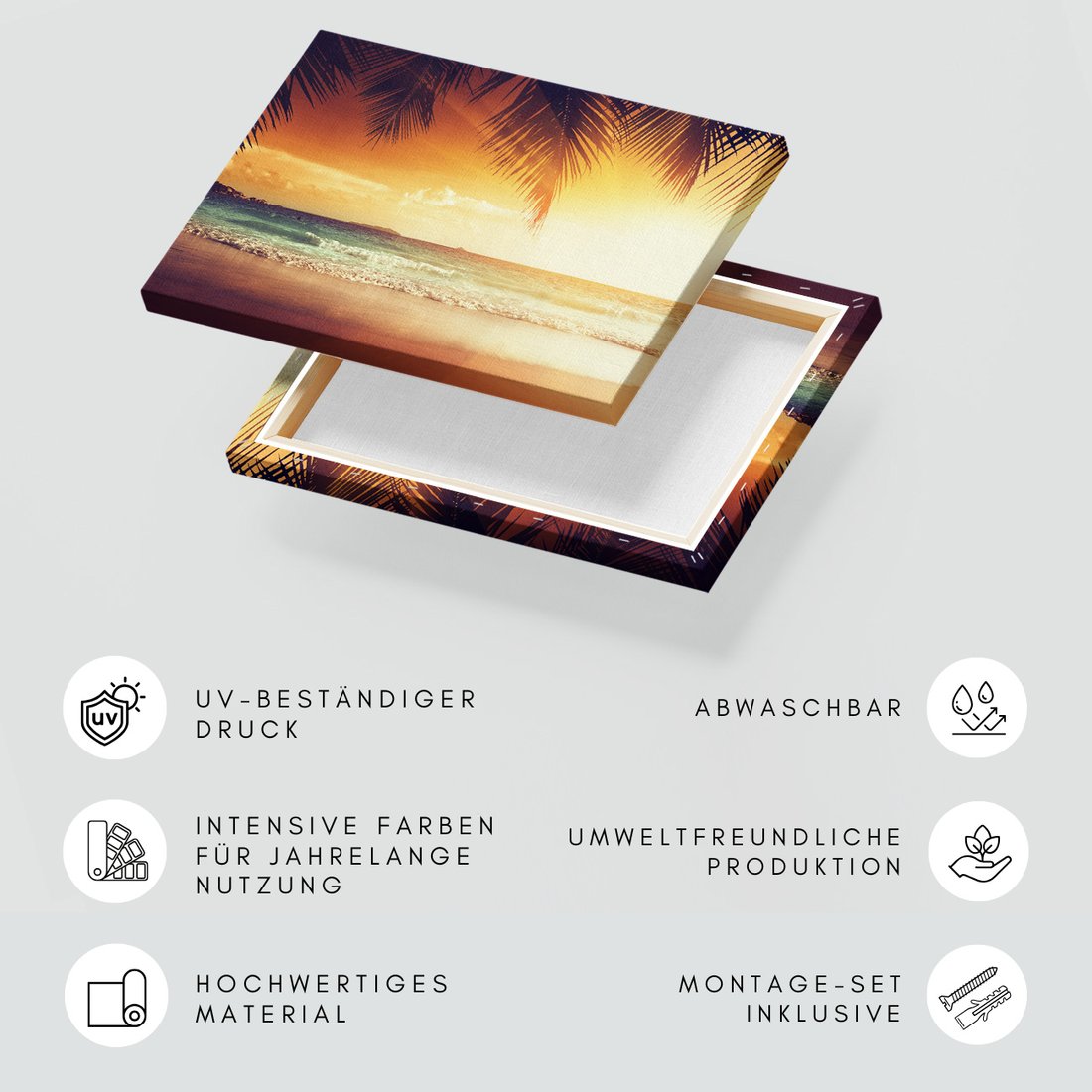 Obraz na płótnie z motywem plaża, morze, palmy to kwintesencja estetyki i trwałości. Dzięki łatwemu montażowi i uniwersalnemu wzornictwu, czyni go idealnym wyborem zarówno do codziennego użytku, jak i na wyrafinowany prezent.