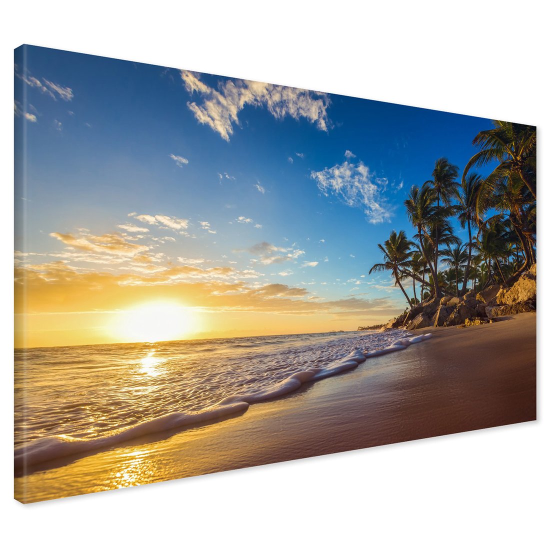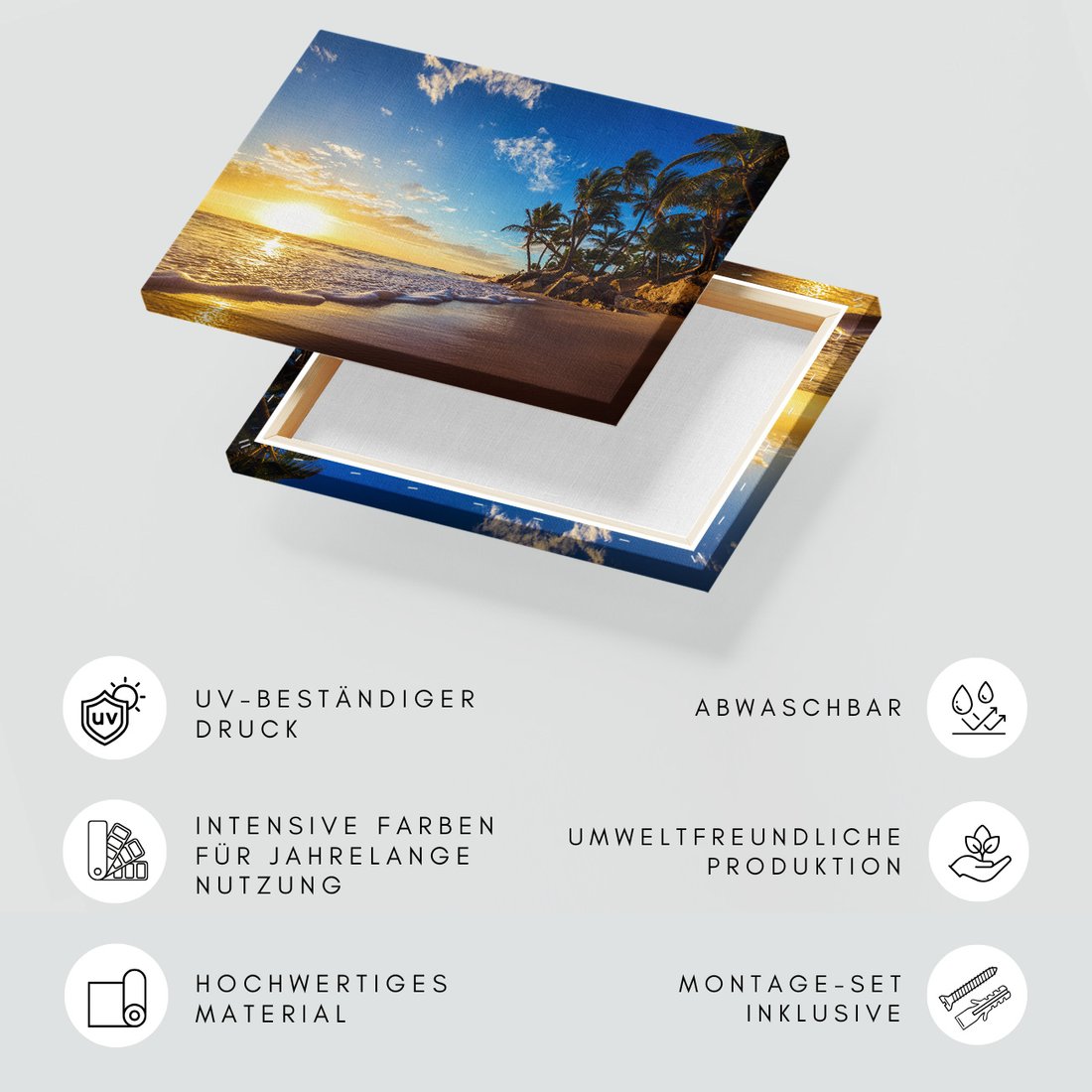 Obraz na płótnie z motywem plaża, morze, palmy to kwintesencja estetyki i trwałości. Dzięki łatwemu montażowi i uniwersalnemu wzornictwu, czyni go idealnym wyborem zarówno do codziennego użytku, jak i na wyrafinowany prezent.