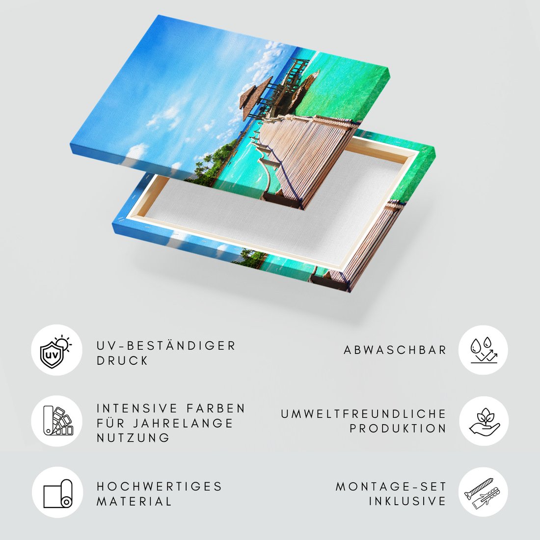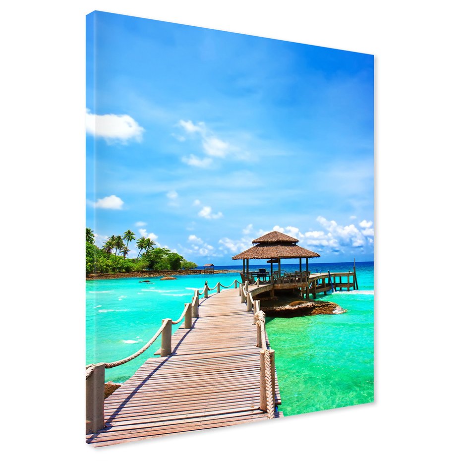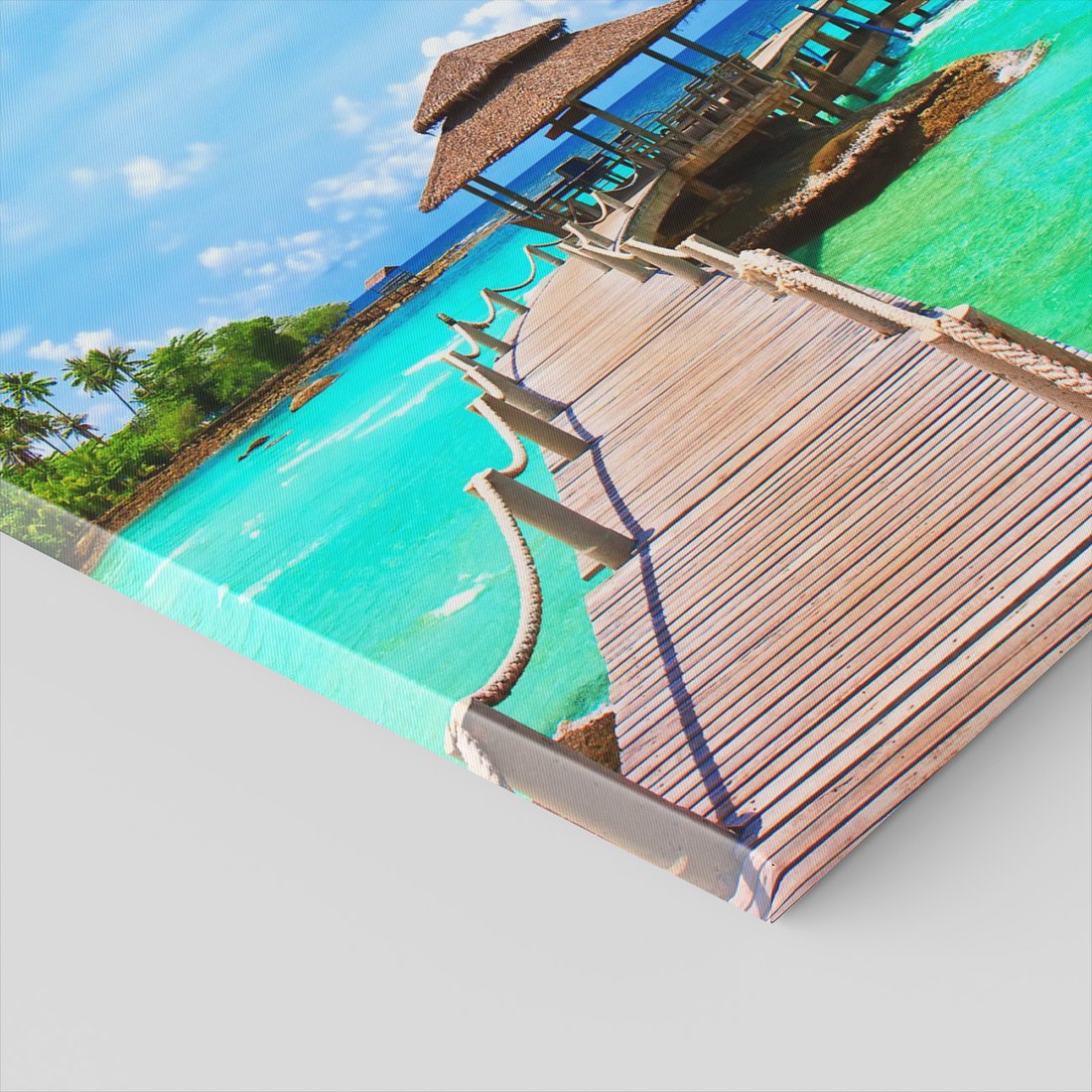 Obraz na płótnie z motywem plaża, morze, pomost to kwintesencja estetyki i trwałości. Dzięki łatwemu montażowi i uniwersalnemu wzornictwu, czyni go idealnym wyborem zarówno do codziennego użytku, jak i na wyrafinowany prezent.