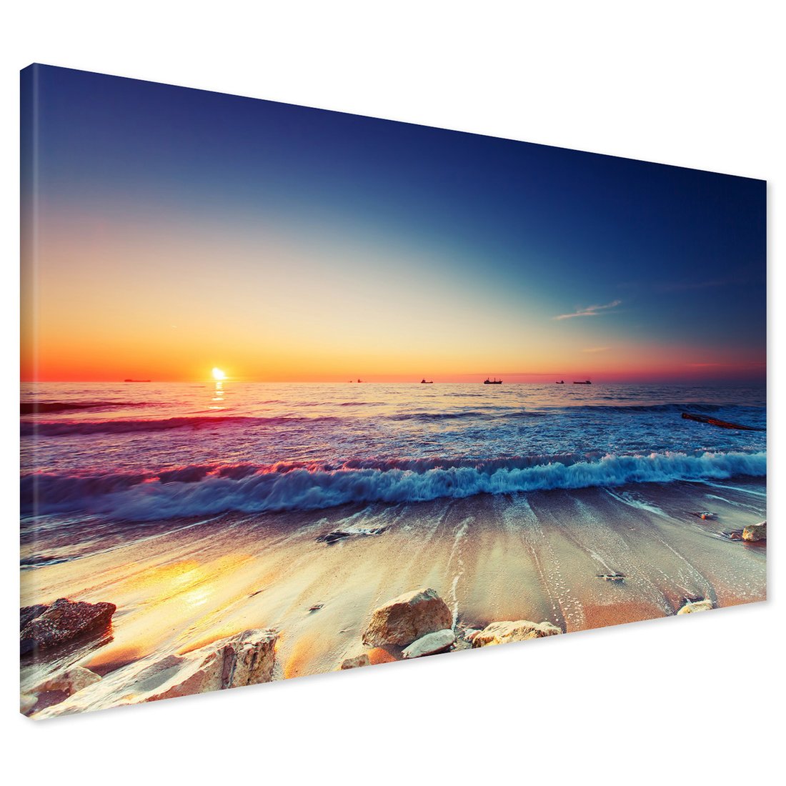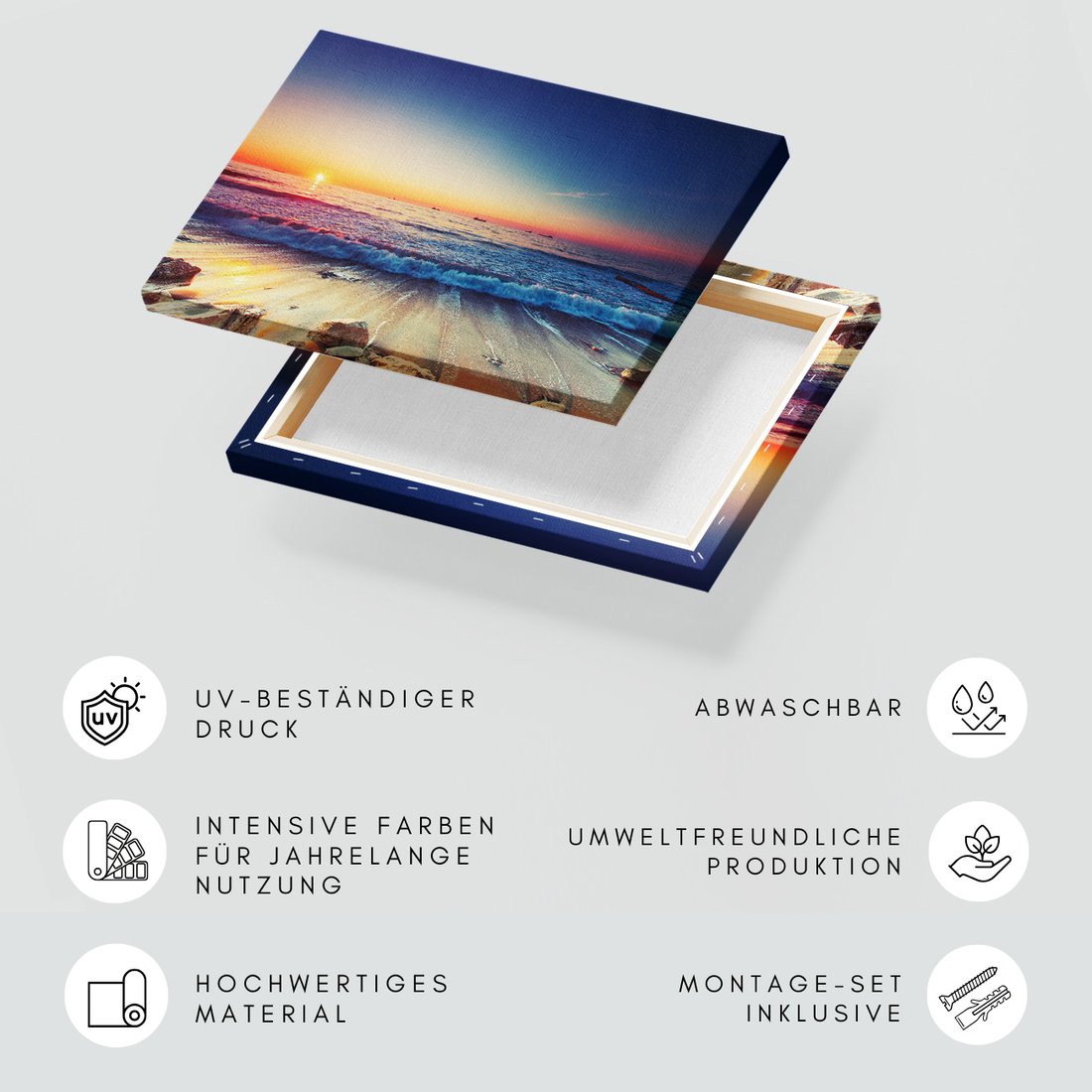 Obraz na płótnie z motywem plaża, morze, zachód słońca to kwintesencja estetyki i trwałości. Dzięki łatwemu montażowi i uniwersalnemu wzornictwu, czyni go idealnym wyborem zarówno do codziennego użytku, jak i na wyrafinowany prezent.
