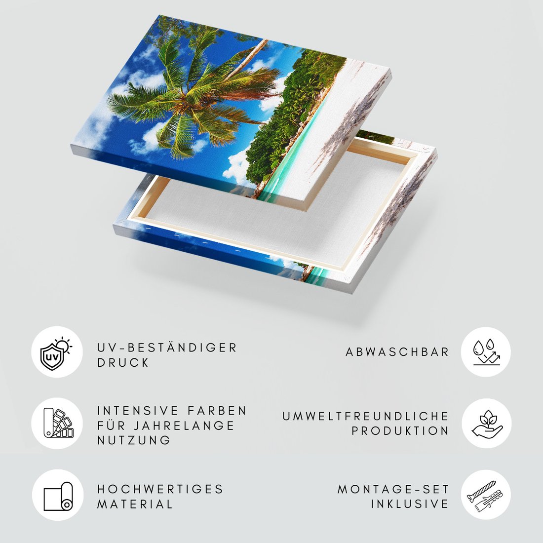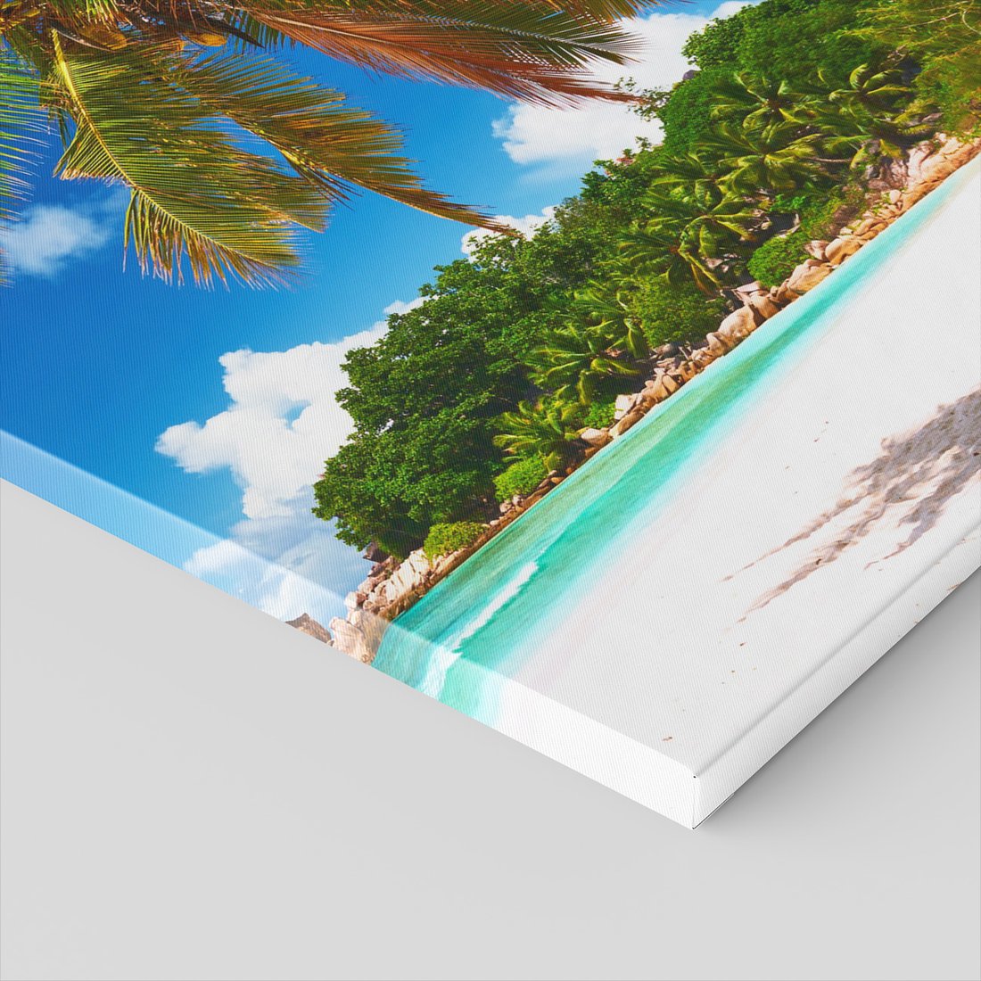 Obraz na płótnie z motywem plaża, palmy, morze to kwintesencja estetyki i trwałości. Dzięki łatwemu montażowi i uniwersalnemu wzornictwu, czyni go idealnym wyborem zarówno do codziennego użytku, jak i na wyrafinowany prezent.