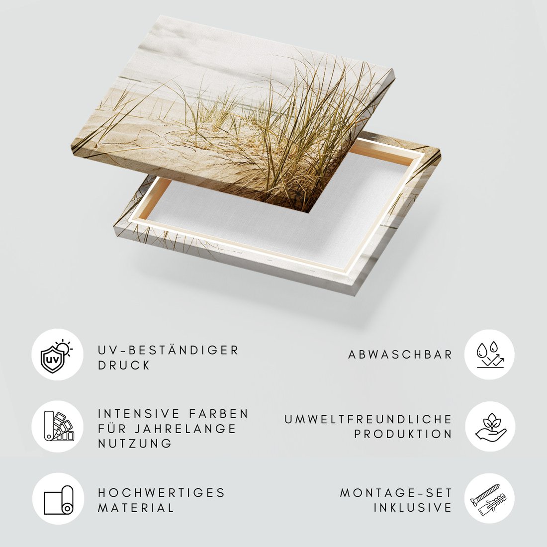 Obraz na płótnie z motywem plaża, trawa, morze to kwintesencja estetyki i trwałości. Dzięki łatwemu montażowi i uniwersalnemu wzornictwu, czyni go idealnym wyborem zarówno do codziennego użytku, jak i na wyrafinowany prezent.