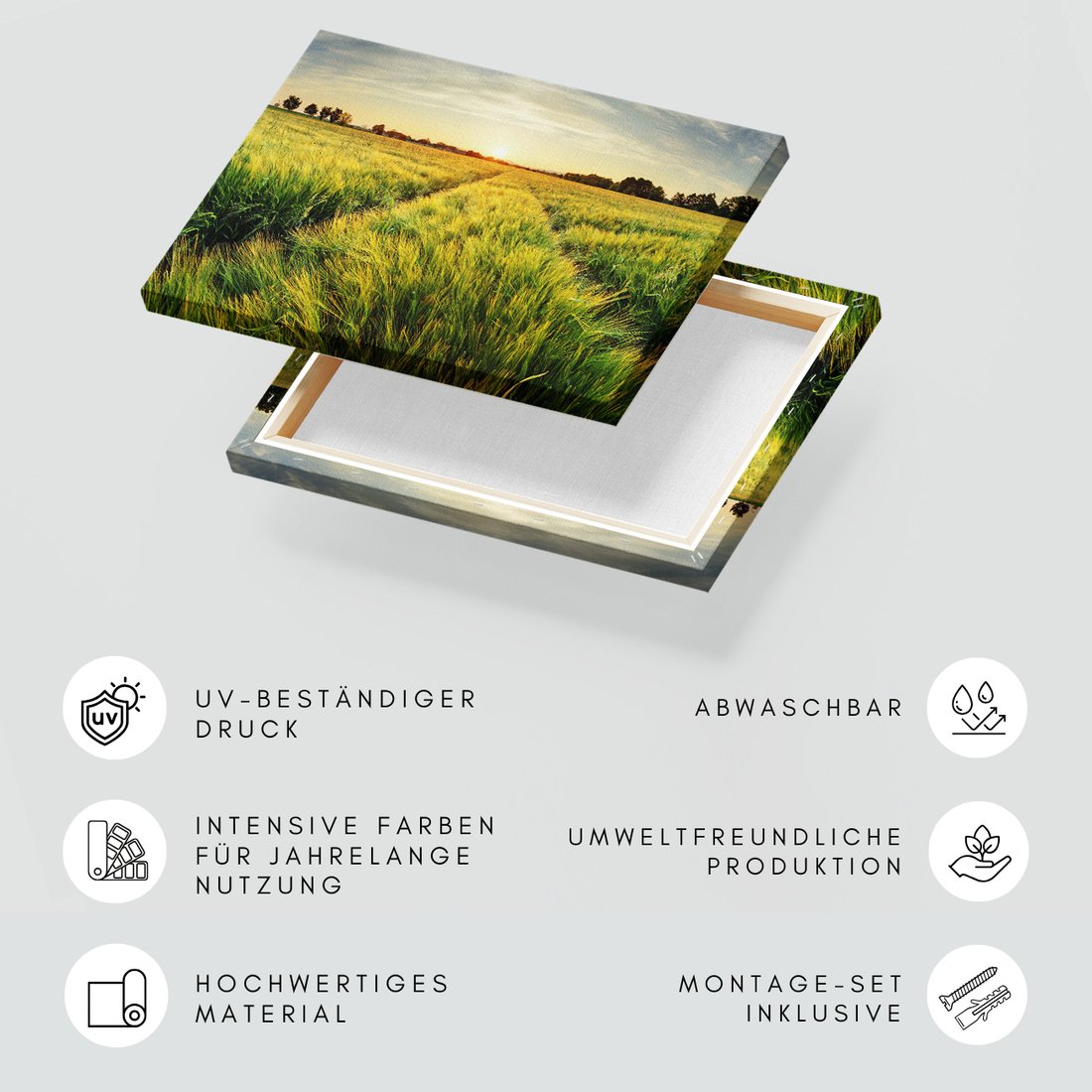 Obraz na płótnie z motywem pole, zboże, lato to kwintesencja estetyki i trwałości. Dzięki łatwemu montażowi i uniwersalnemu wzornictwu, czyni go idealnym wyborem zarówno do codziennego użytku, jak i na wyrafinowany prezent.