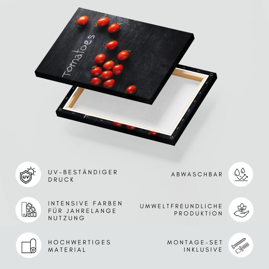 Obraz na płótnie z motywem pomidory, warzywa, jedzenie to kwintesencja estetyki i trwałości. Dzięki łatwemu montażowi i uniwersalnemu wzornictwu, czyni go idealnym wyborem zarówno do codziennego użytku, jak i na wyrafinowany prezent.