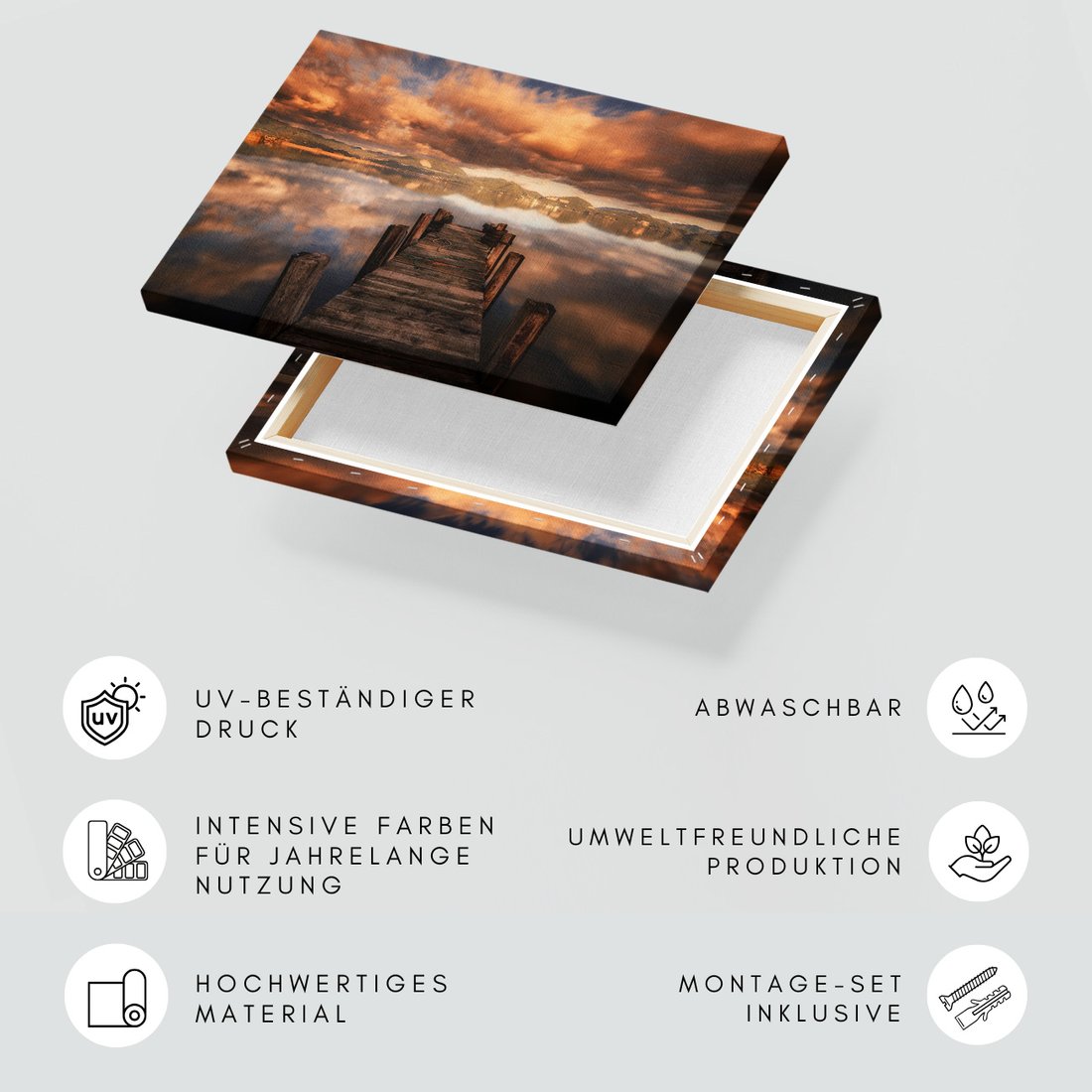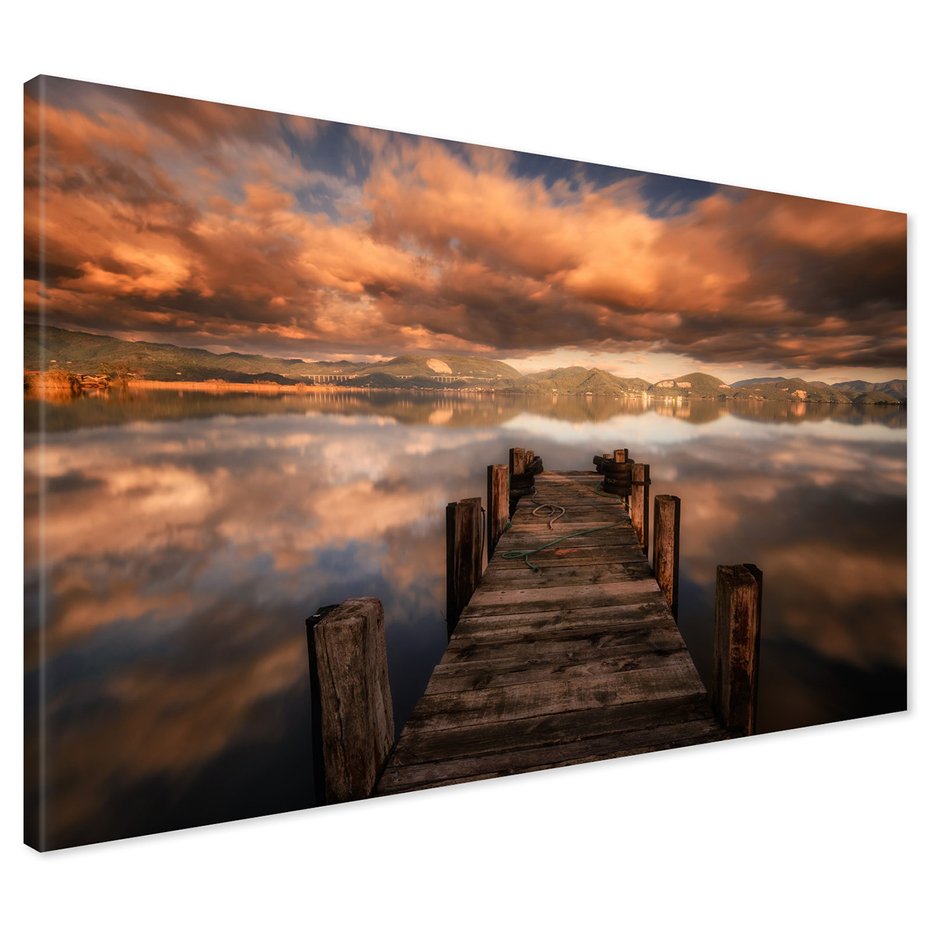 Obraz na płótnie z motywem pomost, jezioro, krajobraz to kwintesencja estetyki i trwałości. Dzięki łatwemu montażowi i uniwersalnemu wzornictwu, czyni go idealnym wyborem zarówno do codziennego użytku, jak i na wyrafinowany prezent.