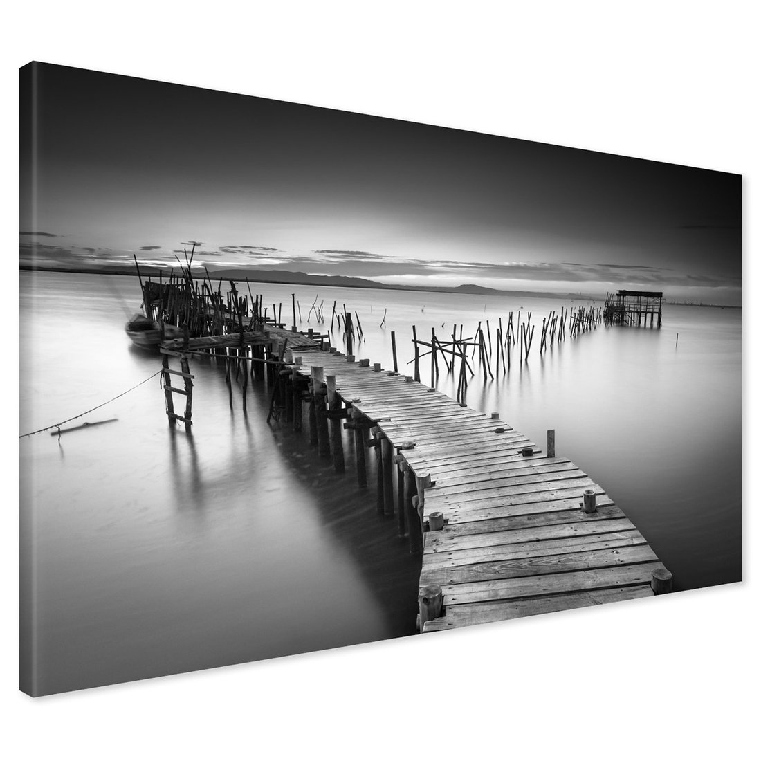 - Obraz na płótnie - pomost, woda, czarny i biały