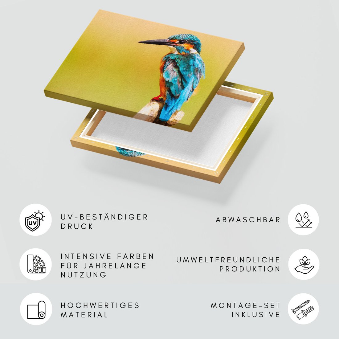 Obraz na płótnie z motywem ptak, zimorodek, natura to kwintesencja estetyki i trwałości. Dzięki łatwemu montażowi i uniwersalnemu wzornictwu, czyni go idealnym wyborem zarówno do codziennego użytku, jak i na wyrafinowany prezent.
