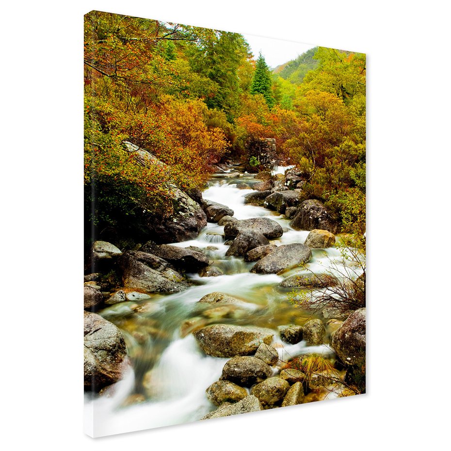 Obraz na płótnie z motywem rzeka, las, kamienie to kwintesencja estetyki i trwałości. Dzięki łatwemu montażowi i uniwersalnemu wzornictwu, czyni go idealnym wyborem zarówno do codziennego użytku, jak i na wyrafinowany prezent.