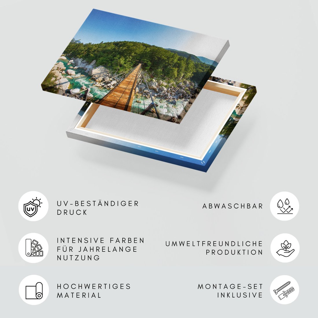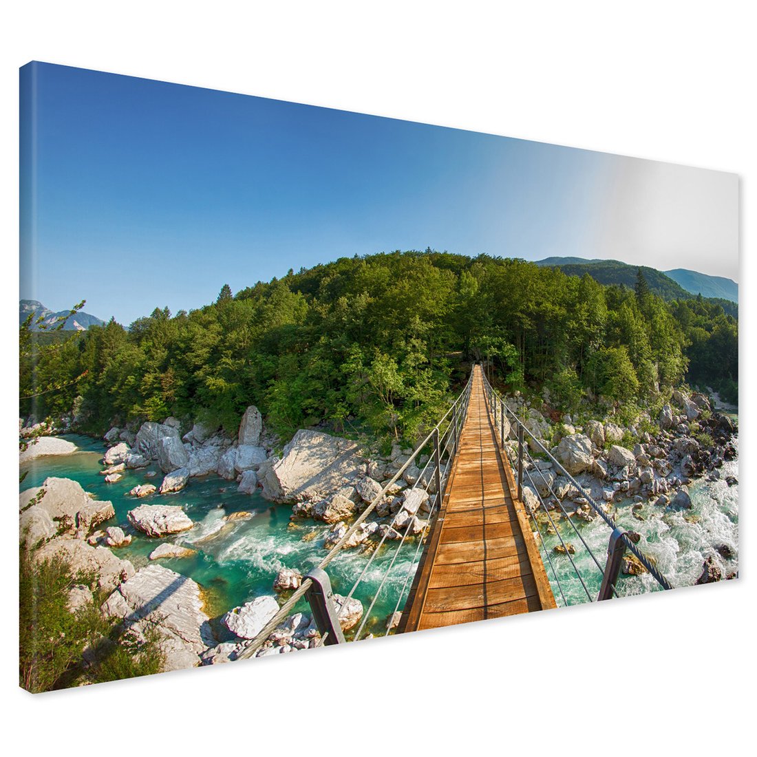 Obraz na płótnie z motywem rzeka, most, las to kwintesencja estetyki i trwałości. Dzięki łatwemu montażowi i uniwersalnemu wzornictwu, czyni go idealnym wyborem zarówno do codziennego użytku, jak i na wyrafinowany prezent.