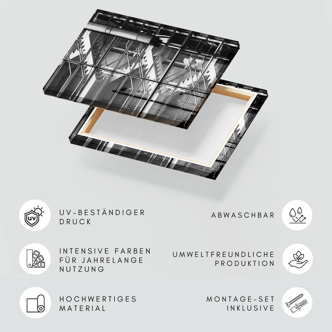 Obraz na płótnie z motywem schody, budynek, okna to kwintesencja estetyki i trwałości. Dzięki łatwemu montażowi i uniwersalnemu wzornictwu, czyni go idealnym wyborem zarówno do codziennego użytku, jak i na wyrafinowany prezent.