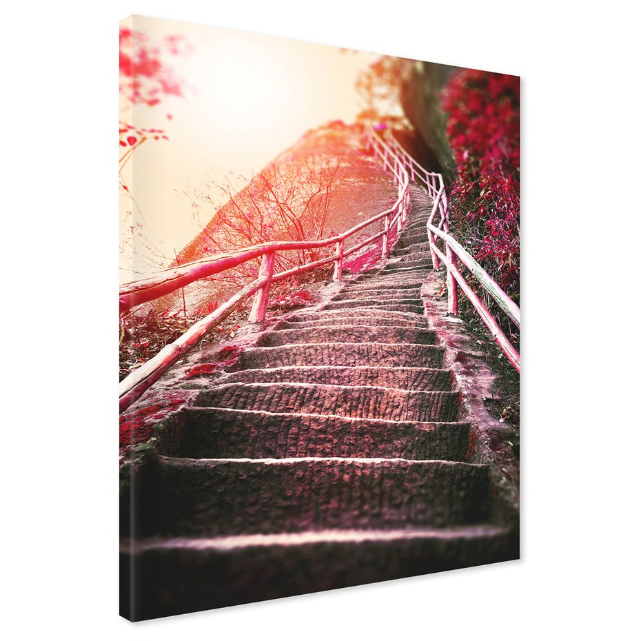 Obraz na płótnie z motywem schody, krajobraz, natura to kwintesencja estetyki i trwałości. Dzięki łatwemu montażowi i uniwersalnemu wzornictwu, czyni go idealnym wyborem zarówno do codziennego użytku, jak i na wyrafinowany prezent.