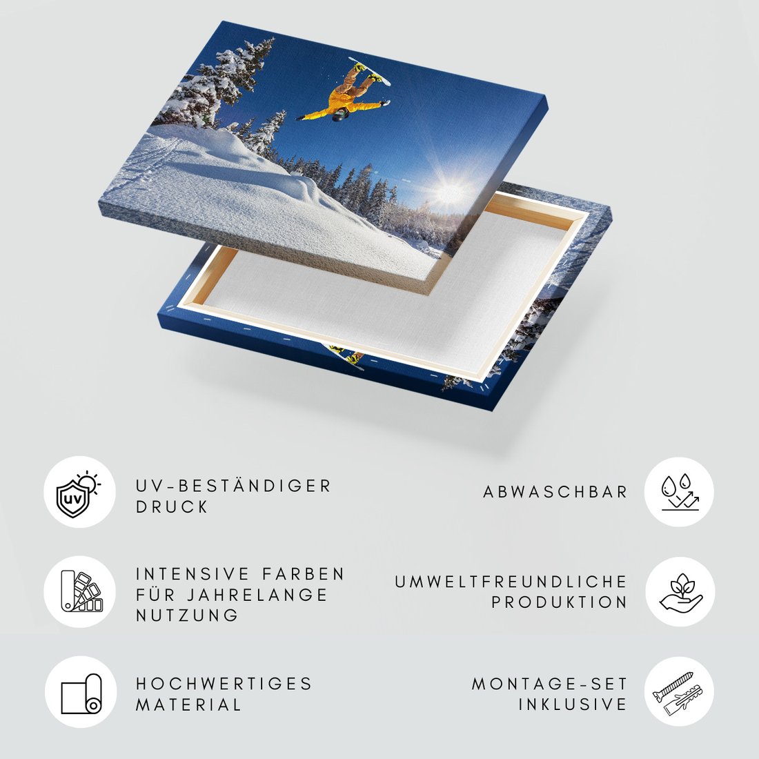Obraz na płótnie z motywem snowboard, zima, śnieg to kwintesencja estetyki i trwałości. Dzięki łatwemu montażowi i uniwersalnemu wzornictwu, czyni go idealnym wyborem zarówno do codziennego użytku, jak i na wyrafinowany prezent.