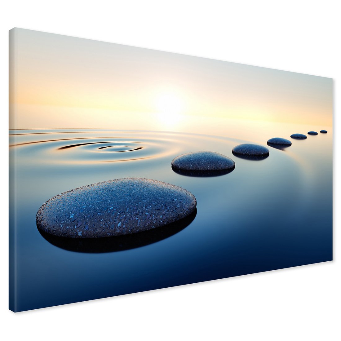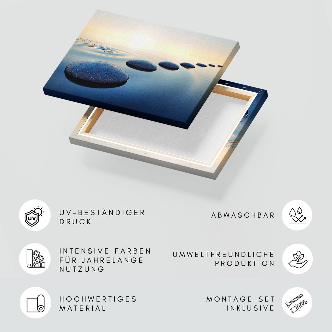 Obraz na płótnie z motywem spokój, woda, kamienie to kwintesencja estetyki i trwałości. Dzięki łatwemu montażowi i uniwersalnemu wzornictwu, czyni go idealnym wyborem zarówno do codziennego użytku, jak i na wyrafinowany prezent.