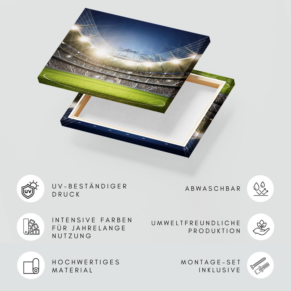 Obraz na płótnie z motywem stadion, piłka nożna, kibice to kwintesencja estetyki i trwałości. Dzięki łatwemu montażowi i uniwersalnemu wzornictwu, czyni go idealnym wyborem zarówno do codziennego użytku, jak i na wyrafinowany prezent.