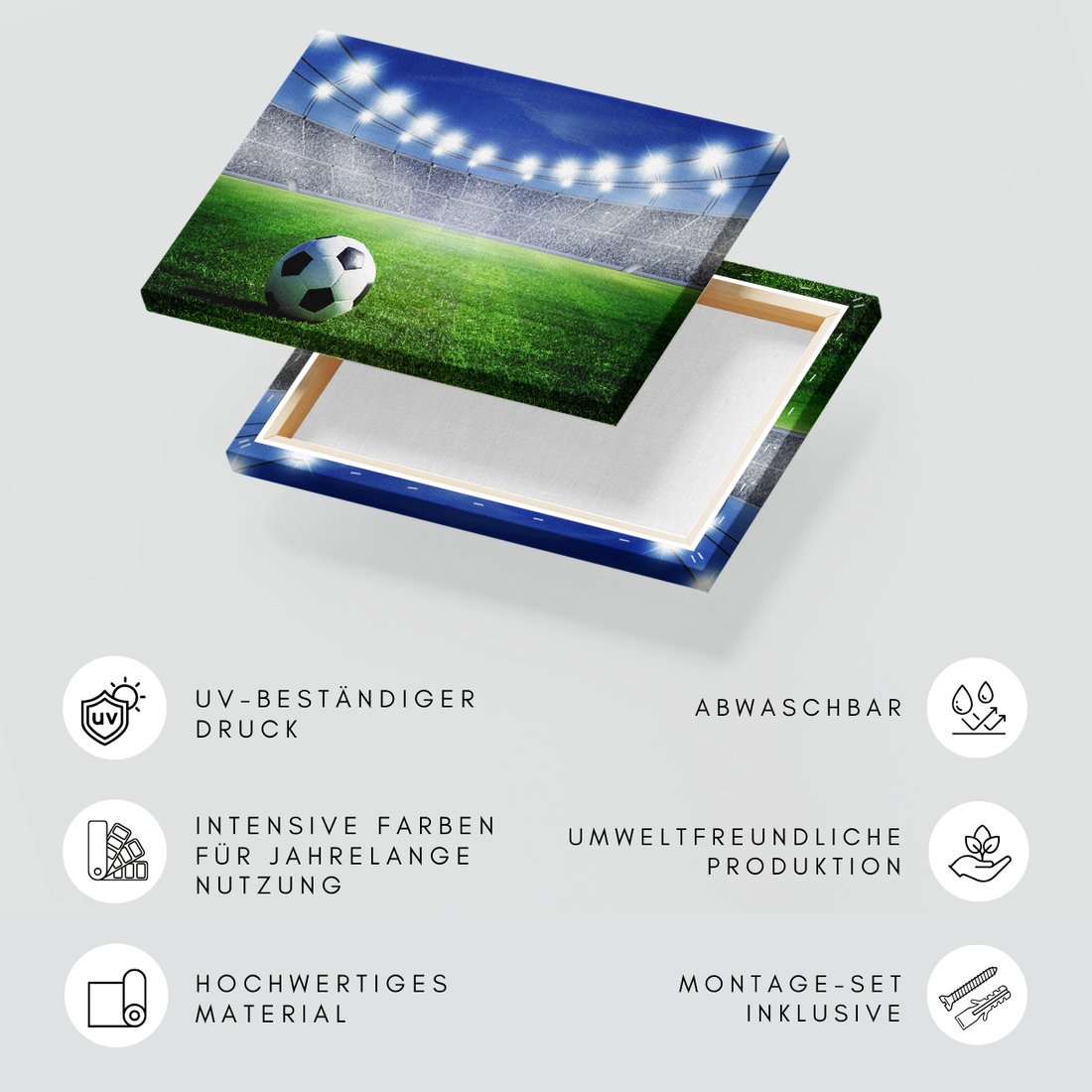 Obraz na płótnie z motywem stadion, piłka nożna, trawa to kwintesencja estetyki i trwałości. Dzięki łatwemu montażowi i uniwersalnemu wzornictwu, czyni go idealnym wyborem zarówno do codziennego użytku, jak i na wyrafinowany prezent.