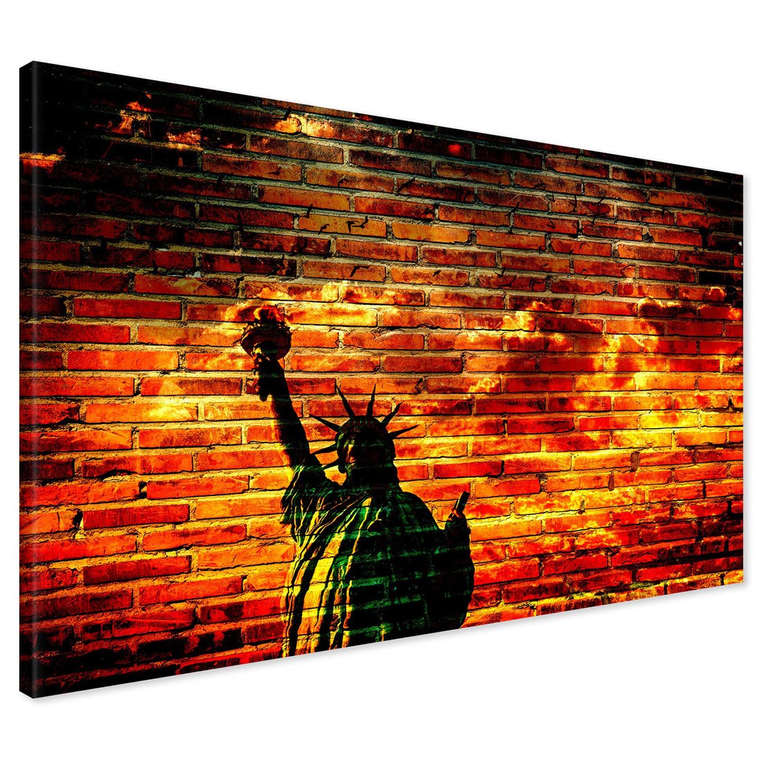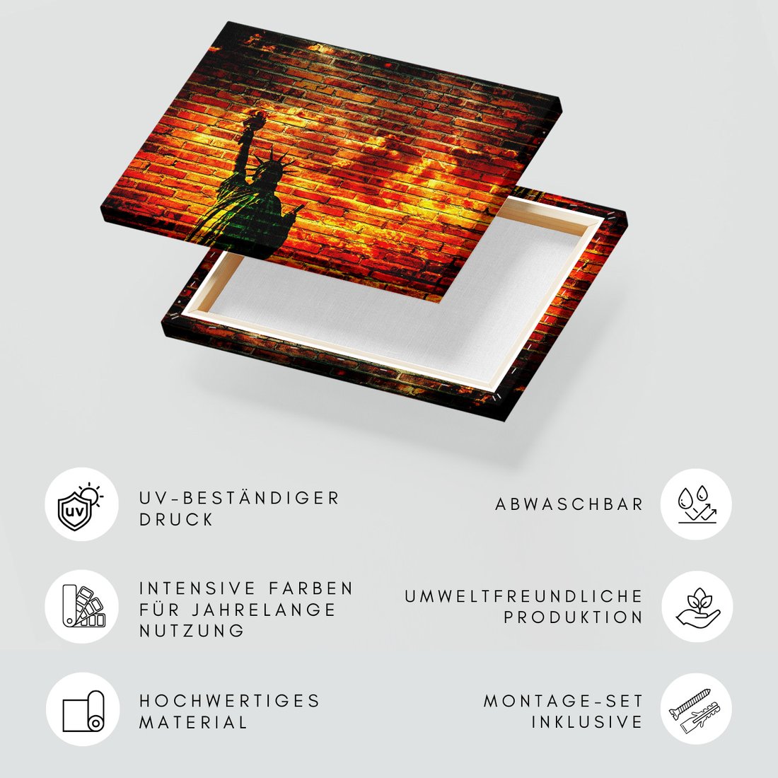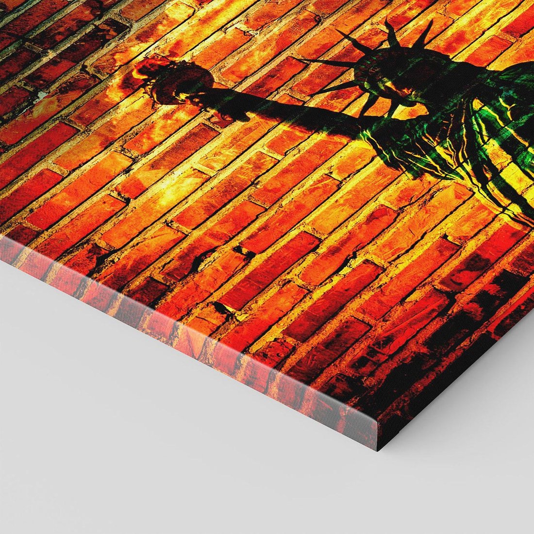 Obraz na płótnie z motywem Statua Wolności, Mur, Czerwony to kwintesencja estetyki i trwałości. Dzięki łatwemu montażowi i uniwersalnemu wzornictwu, czyni go idealnym wyborem zarówno do codziennego użytku, jak i na wyrafinowany prezent.