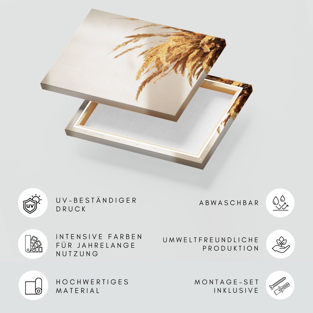 Obraz na płótnie z motywem susz, trawa, beżowy to kwintesencja estetyki i trwałości. Dzięki łatwemu montażowi i uniwersalnemu wzornictwu, czyni go idealnym wyborem zarówno do codziennego użytku, jak i na wyrafinowany prezent.