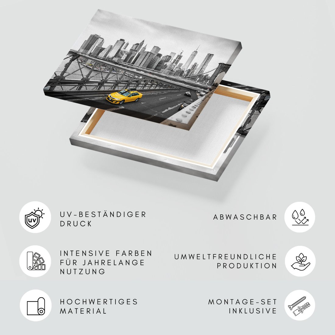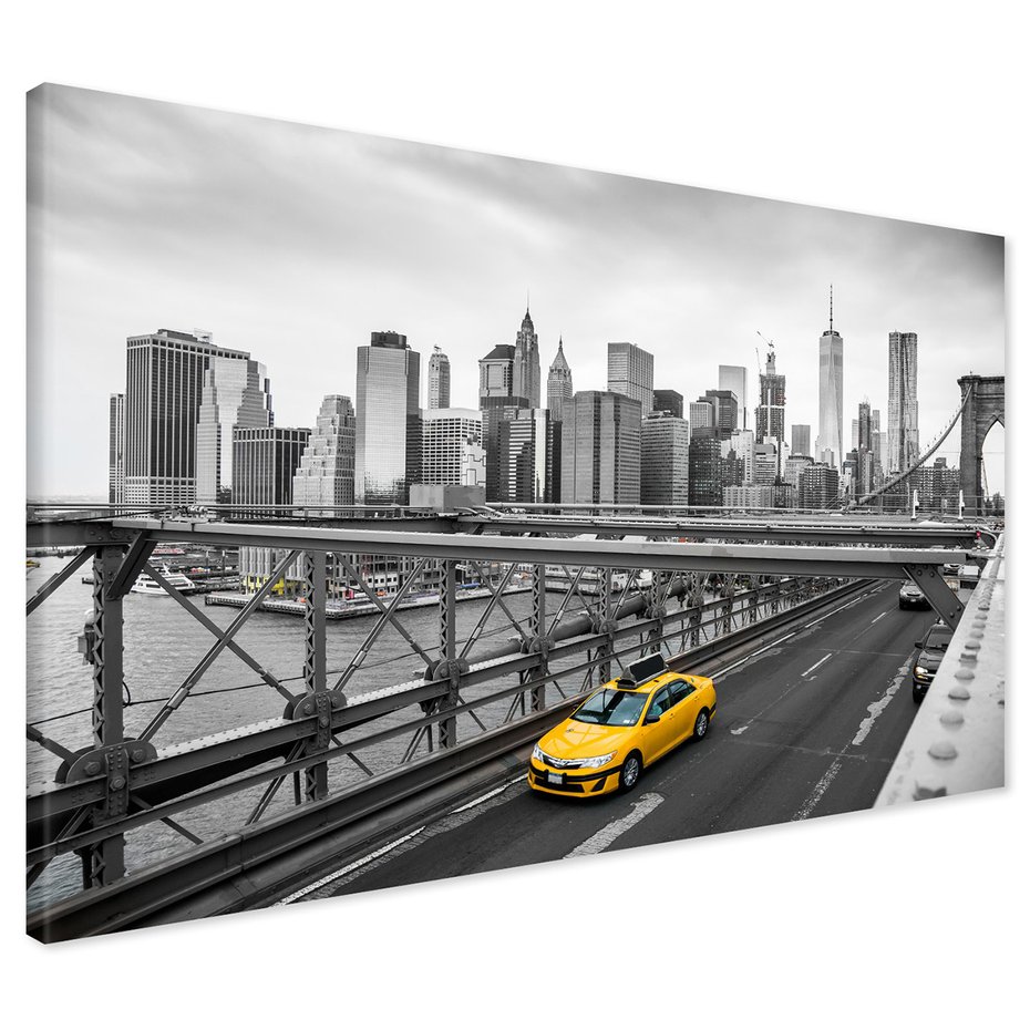 Obraz na płótnie z motywem taksówka, miasto, most to kwintesencja estetyki i trwałości. Dzięki łatwemu montażowi i uniwersalnemu wzornictwu, czyni go idealnym wyborem zarówno do codziennego użytku, jak i na wyrafinowany prezent.