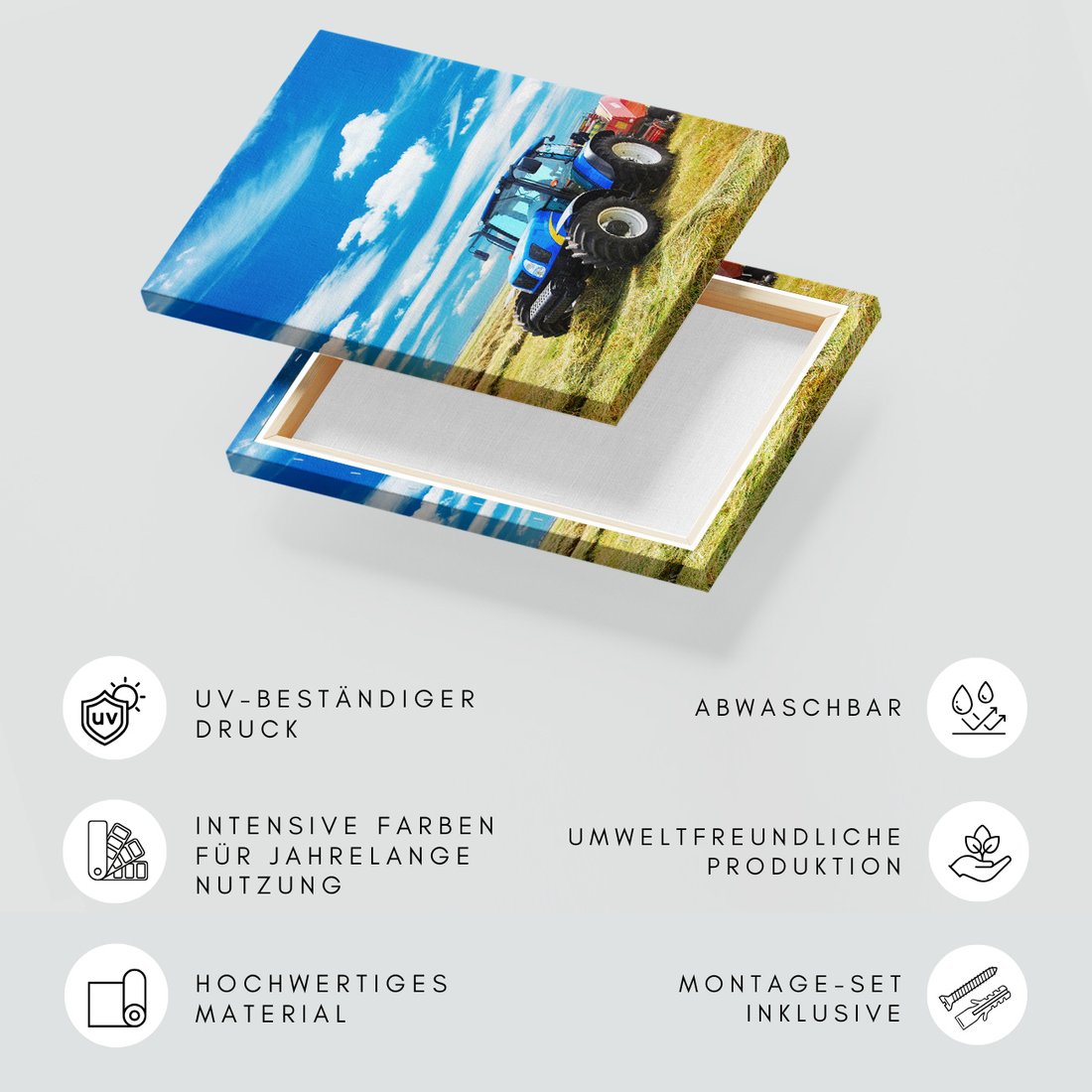 Obraz na płótnie z motywem traktor, pole, niebo to kwintesencja estetyki i trwałości. Dzięki łatwemu montażowi i uniwersalnemu wzornictwu, czyni go idealnym wyborem zarówno do codziennego użytku, jak i na wyrafinowany prezent.