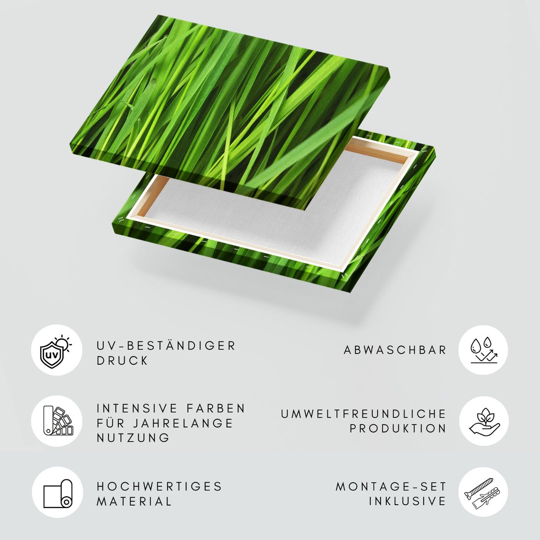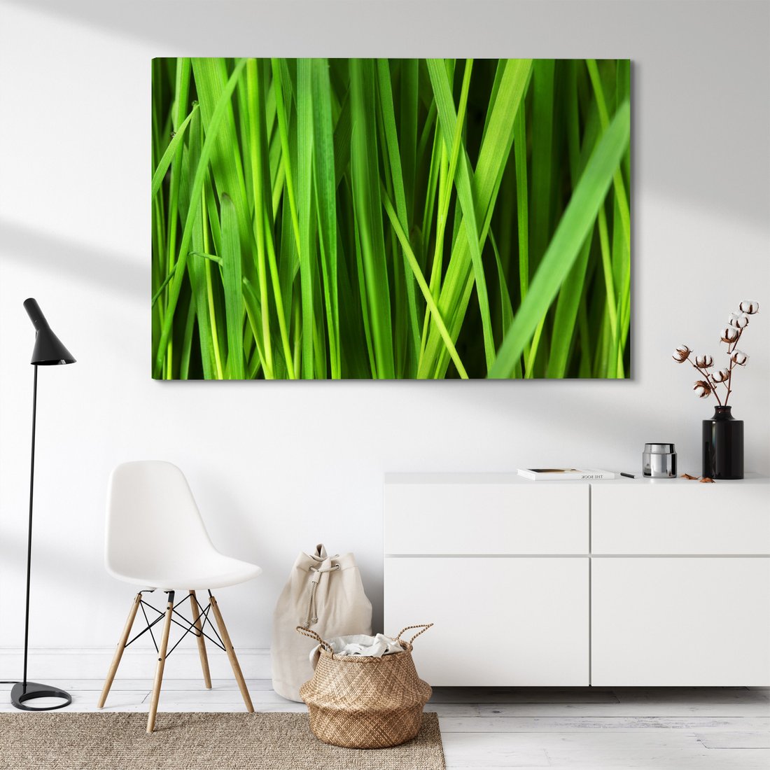 Obraz na płótnie z motywem trawa, zielony, liście to kwintesencja estetyki i trwałości. Dzięki łatwemu montażowi i uniwersalnemu wzornictwu, czyni go idealnym wyborem zarówno do codziennego użytku, jak i na wyrafinowany prezent.