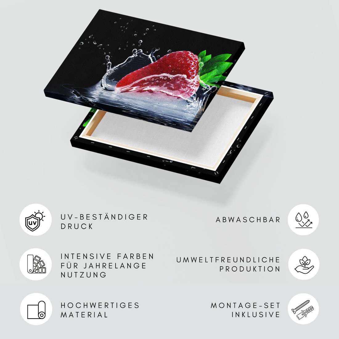 Obraz na płótnie z motywem truskawka, woda, owoc to kwintesencja estetyki i trwałości. Dzięki łatwemu montażowi i uniwersalnemu wzornictwu, czyni go idealnym wyborem zarówno do codziennego użytku, jak i na wyrafinowany prezent.